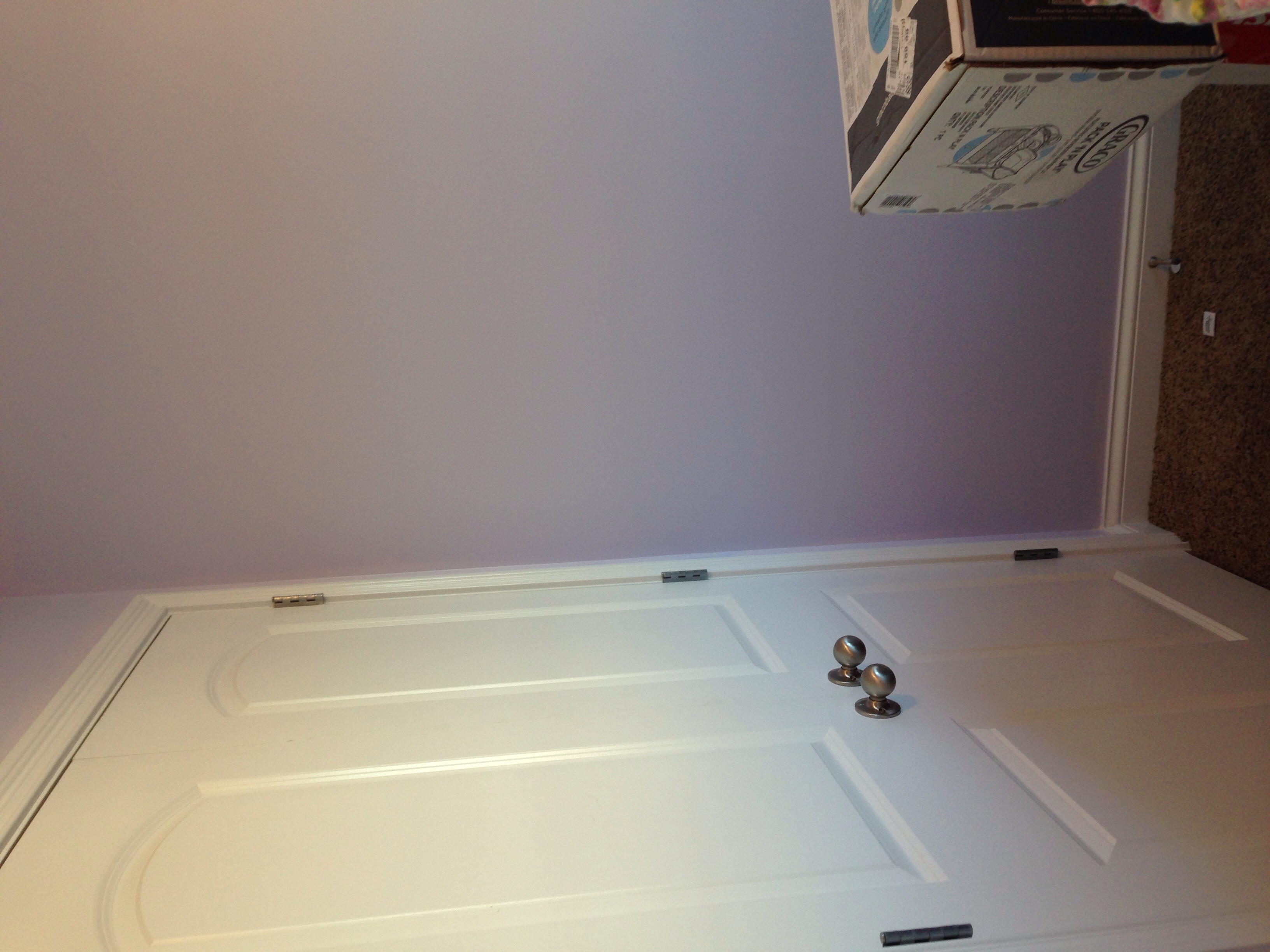 The purple walls are actually more of a lavender. The lighting in my house blows so it's looks like a greyish purple.
