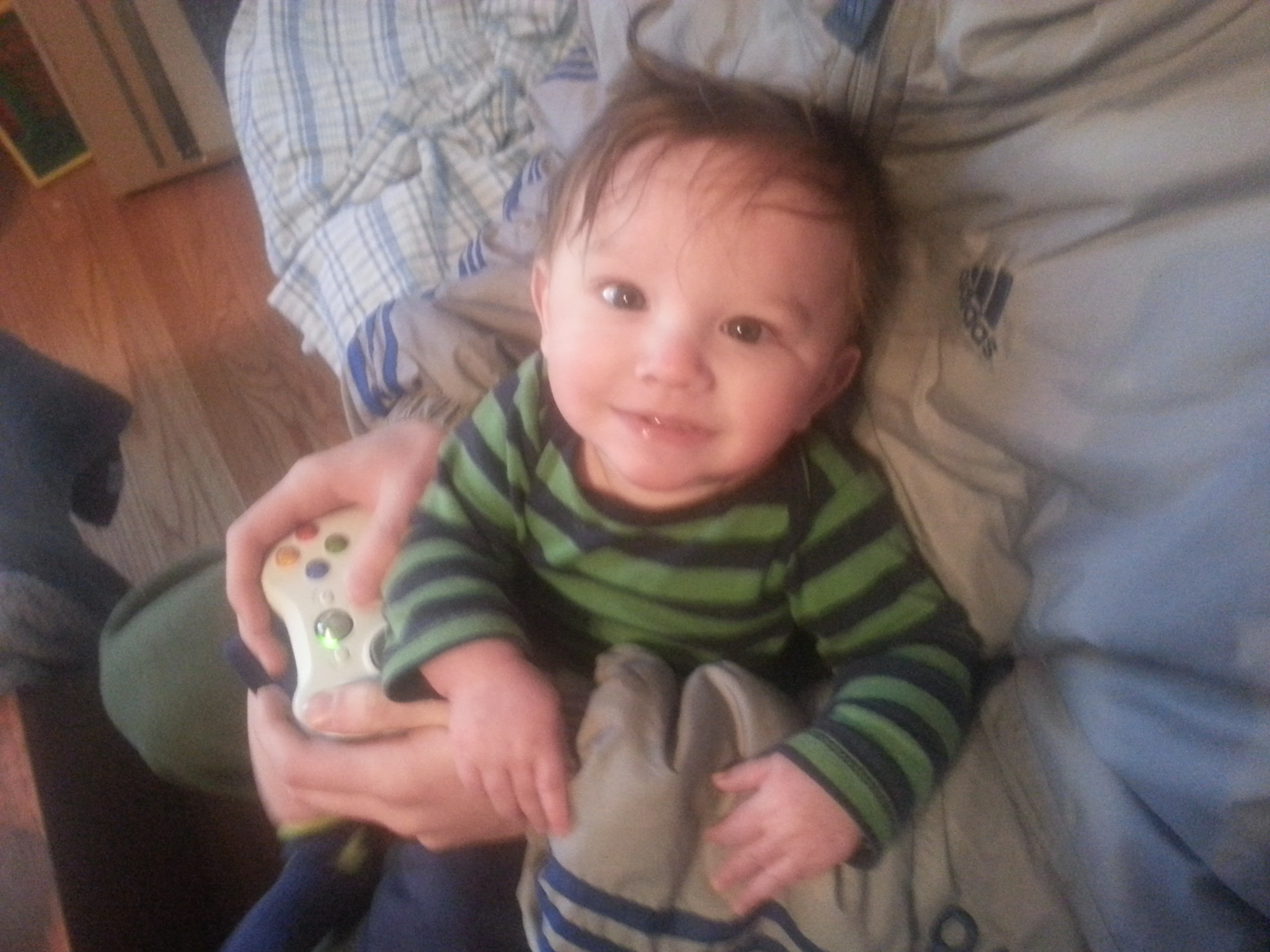 Beckett is figuring the straw sippy cup. Holding it upside down to chew the bottom is also fun.