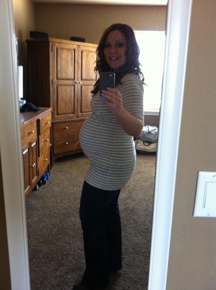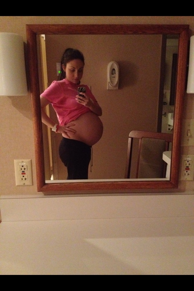 DH measured me just for kicks at 37 weeks and I was 56.5" around my bump...which is really funny when you consider I'm only 59" tall. I felt like Violet Beauregard in the blueberry suit.