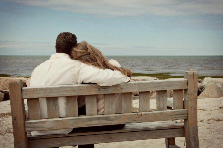 DH and I have known each other literally our entire lives (our parents were friends) and they use to joke about an arranged marriage. We hadn't talked in over 10 years and good ol Facebook got us talking. We realized we were both in Boston and decide to get drinks. Drinks turned into 6 hours and we haven't been apart since. We moved in after 3 months, he proposed at my favorite beach on my favorite bench watching the sunset. We have been married a little over 2 years:) (pic of the bench from our engagement photography)
