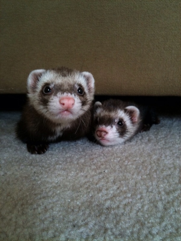 Aww I love ferrets! My sister and I had two growing up. Mine was named Pepe La Pew ... cause of the smell. My sister's was Fluffy. Pretty original
