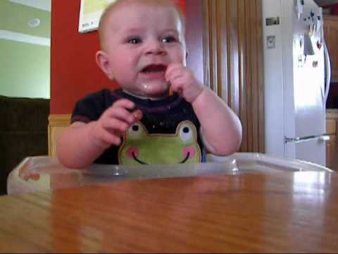 We have another from like a week later of her eating asparagus. It shows her gagging and us fixing it. It's a good example of how gagging is different from chocking.