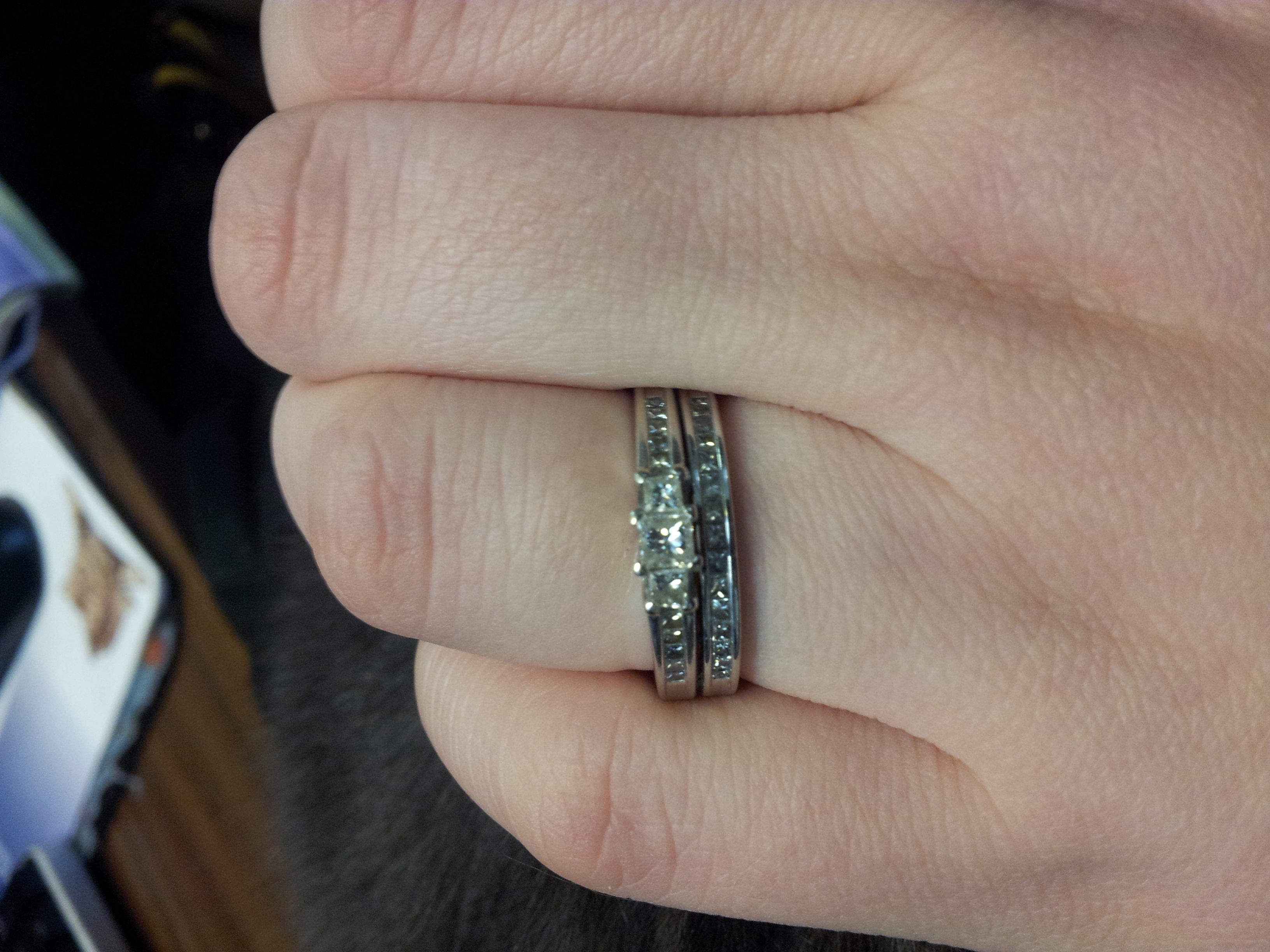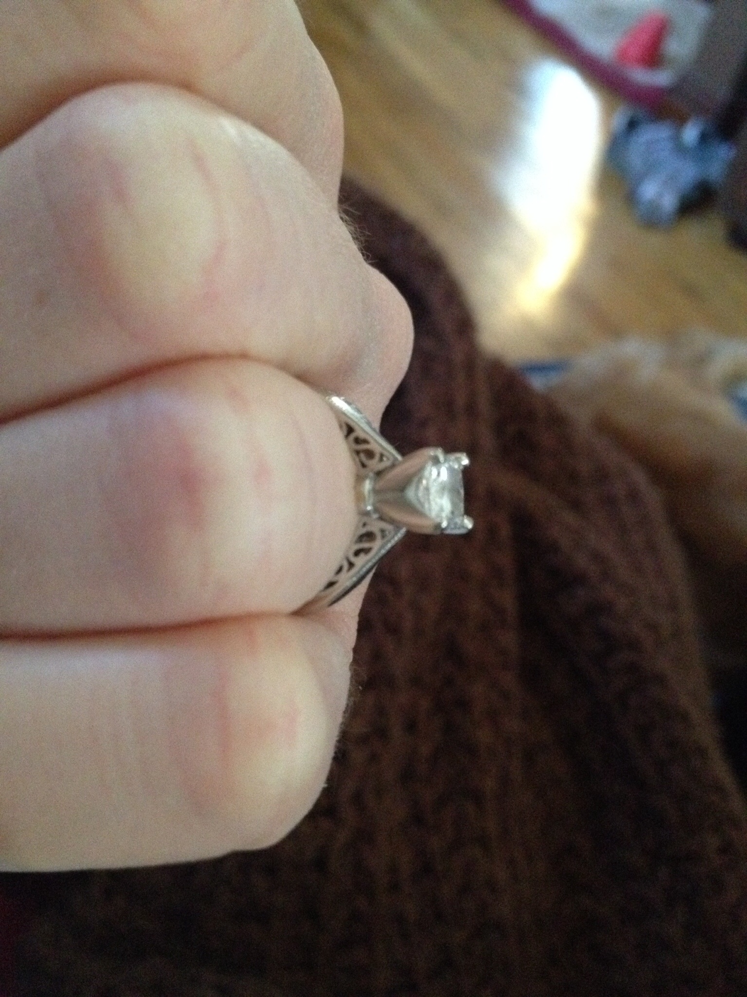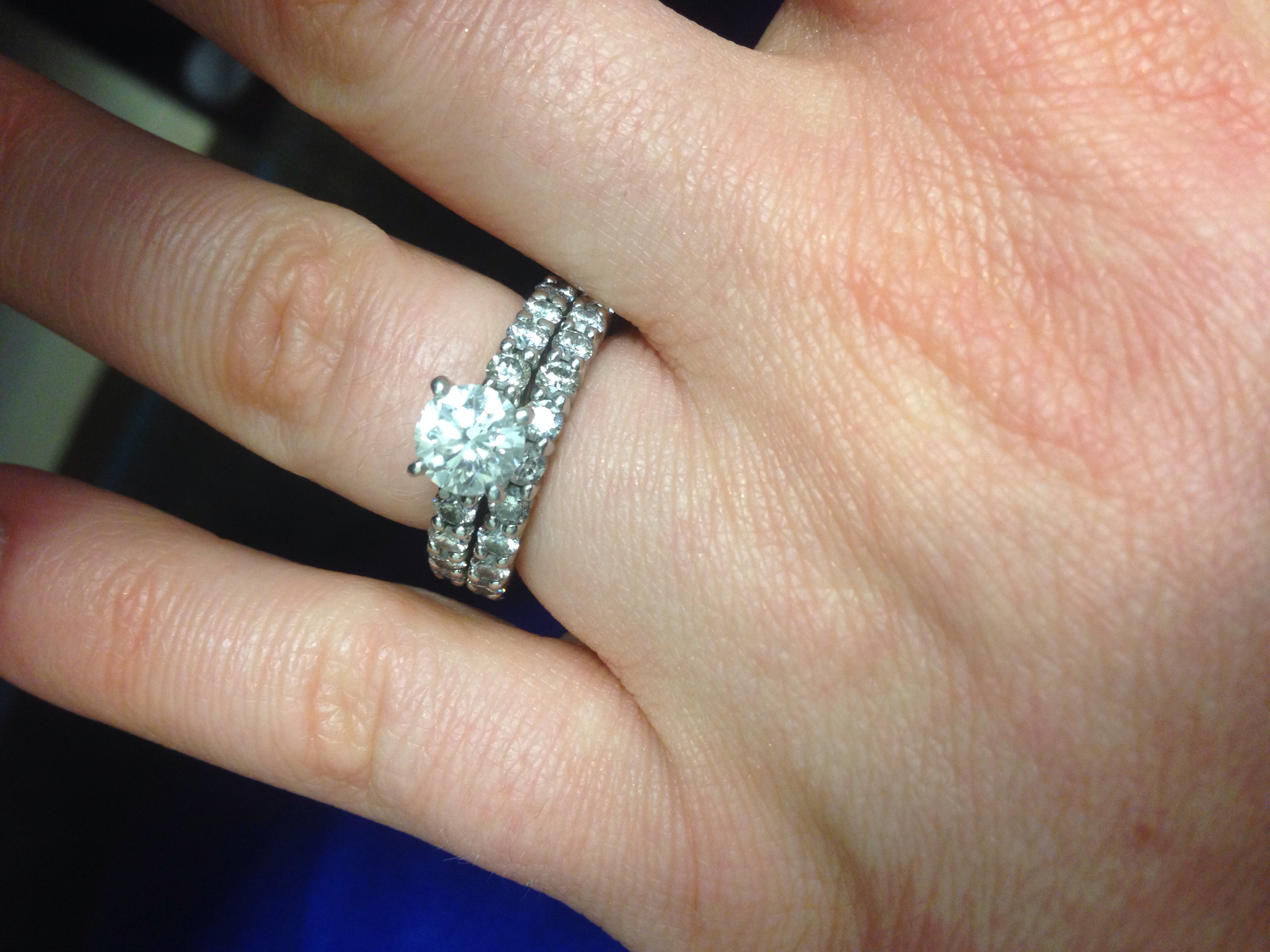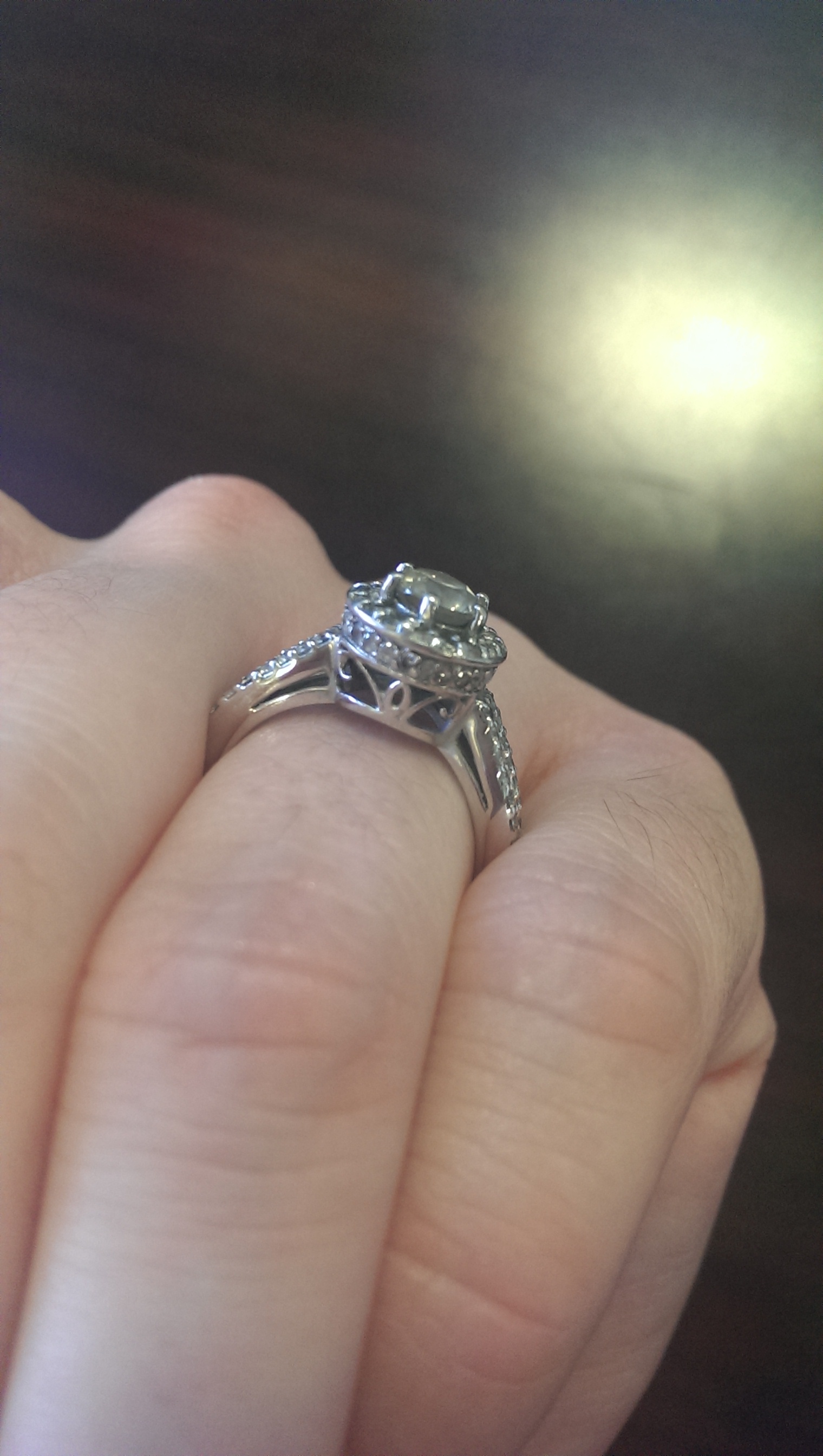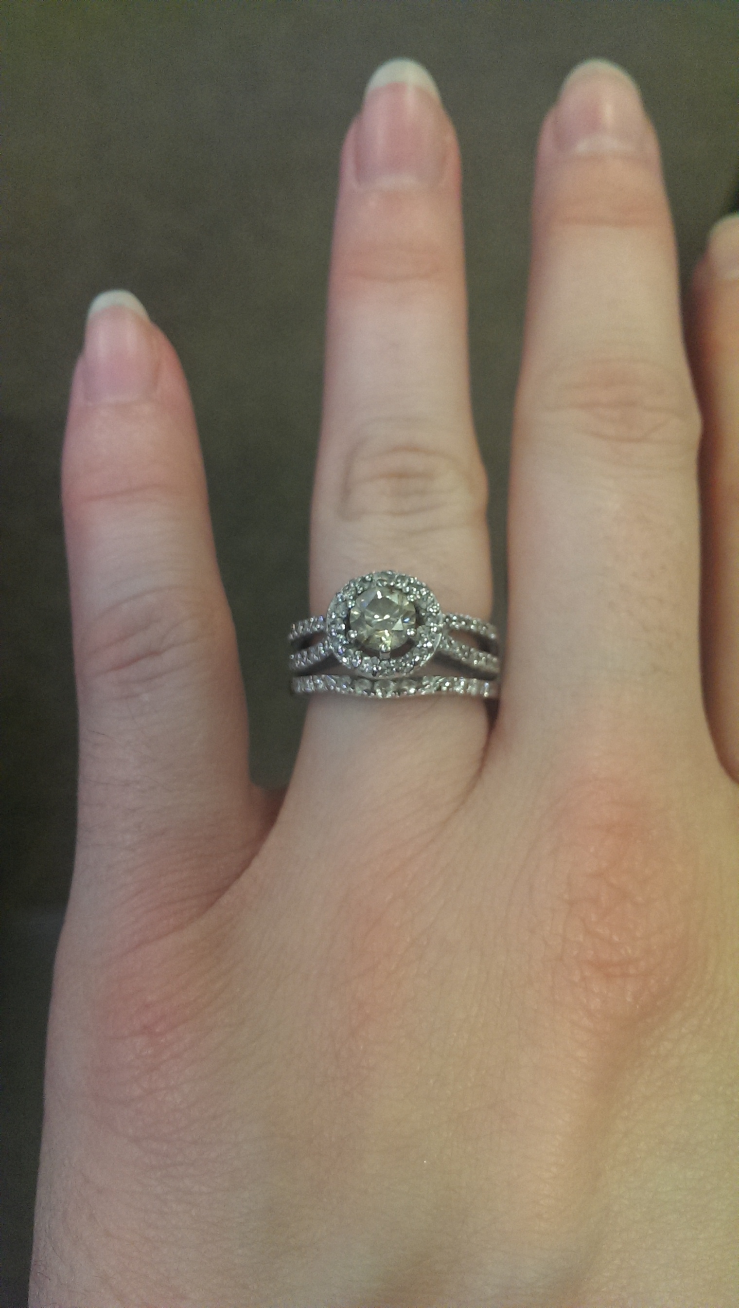 I had no choice but to replace my center stone. The night before our first wedding anniversary my stone vanished. We were standing up in the wedding of our good friends. It was there during the ceremony...since I remember it sparkling under the church lights. Then I didnt look at it again until around 11pm that night. And the stone and the setting/prongs were gone. We have no idea when or where. I never hit my hand on anything...it was a wedding reception (and I was mostly sober). I cried...a lot. DH "thats ok, thats why we have insurance and a warranty" My very drunk friend was crawling on the floor with a flash light looking for it. We figure some little kid got a shiny new rock or it when out when they swept the floor after a balloon drop. Thankfully we had the lifetime warranty with the jeweler...they replaced it with a slightly bigger stone, no questions asked.