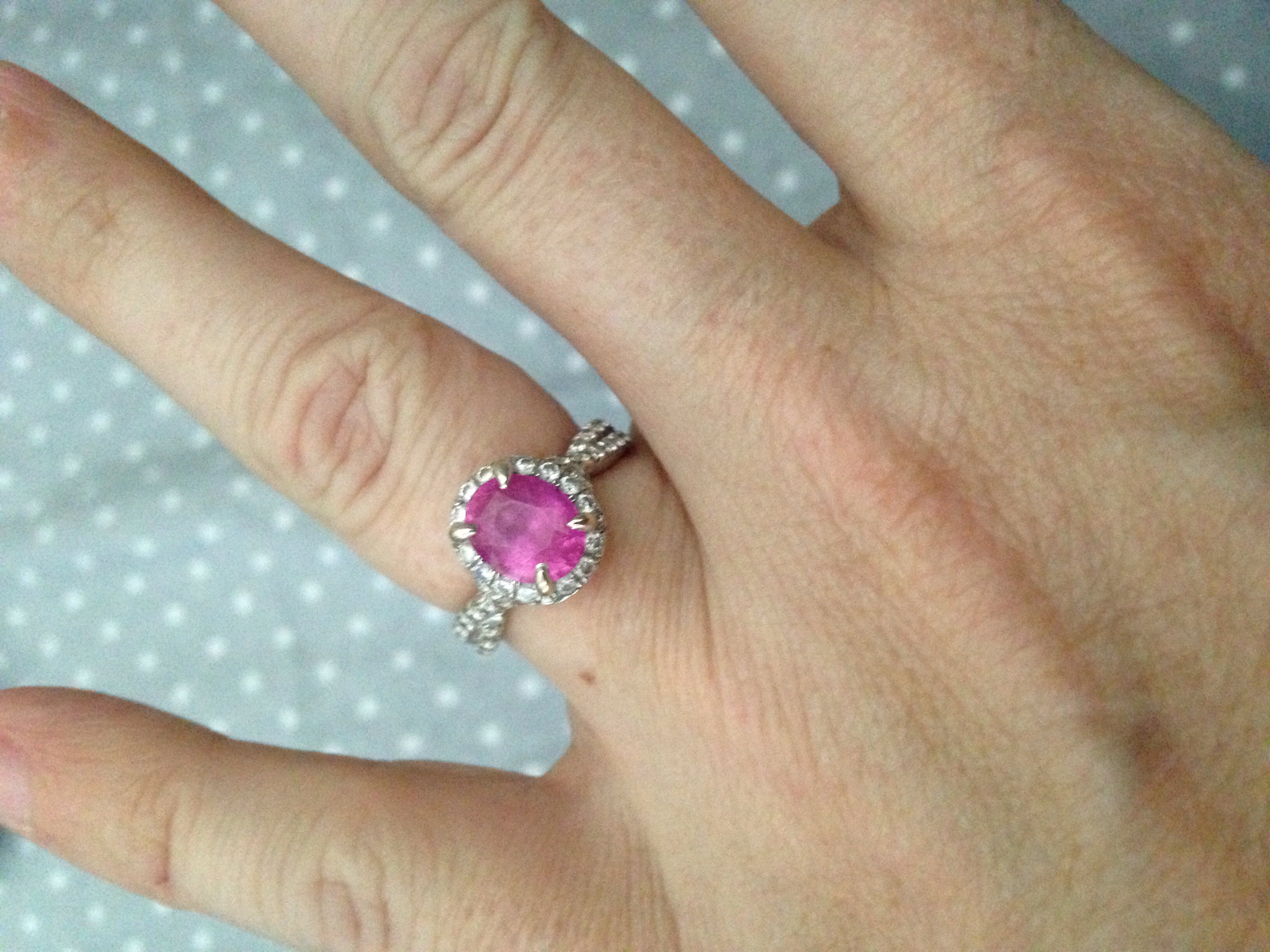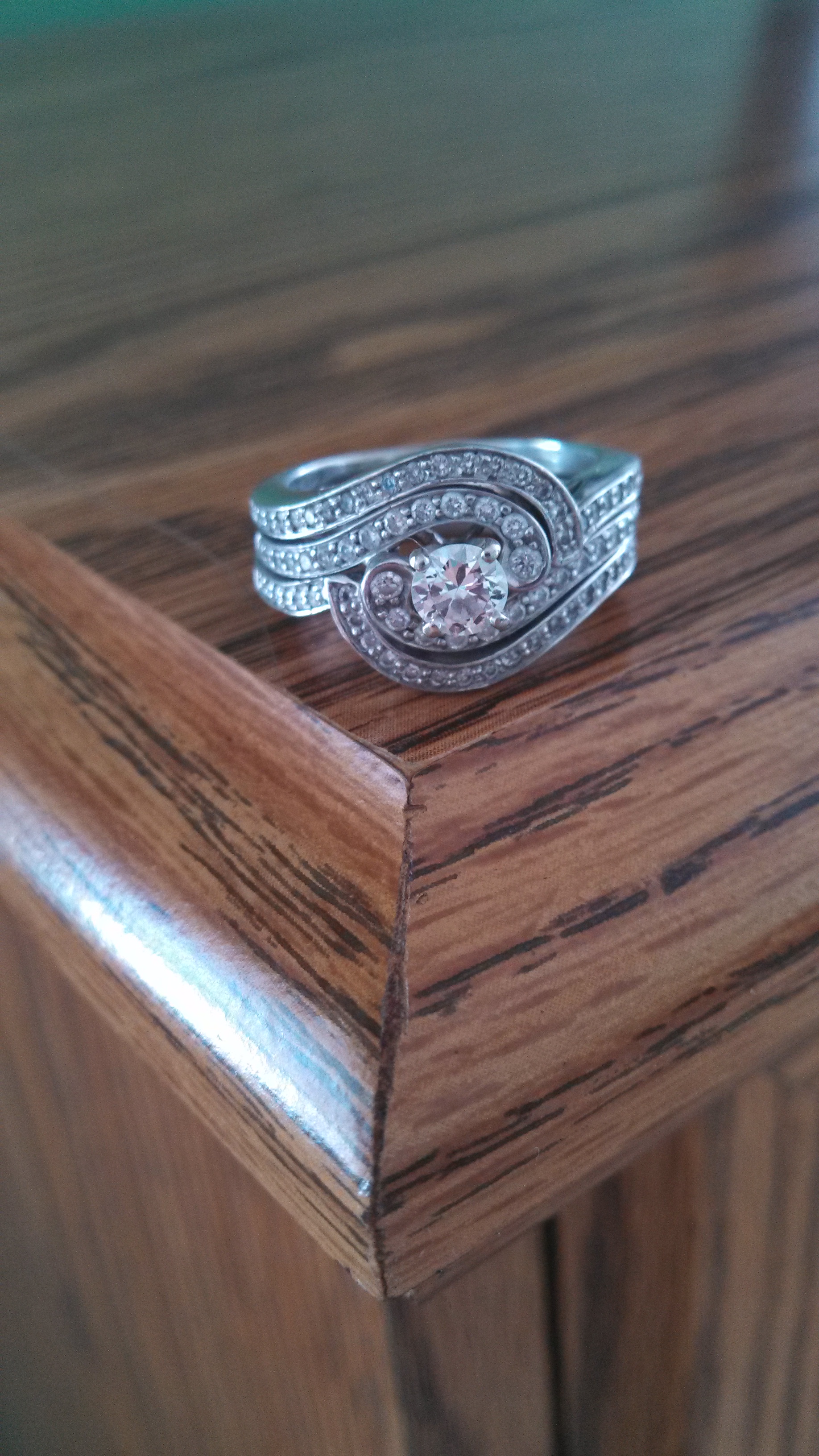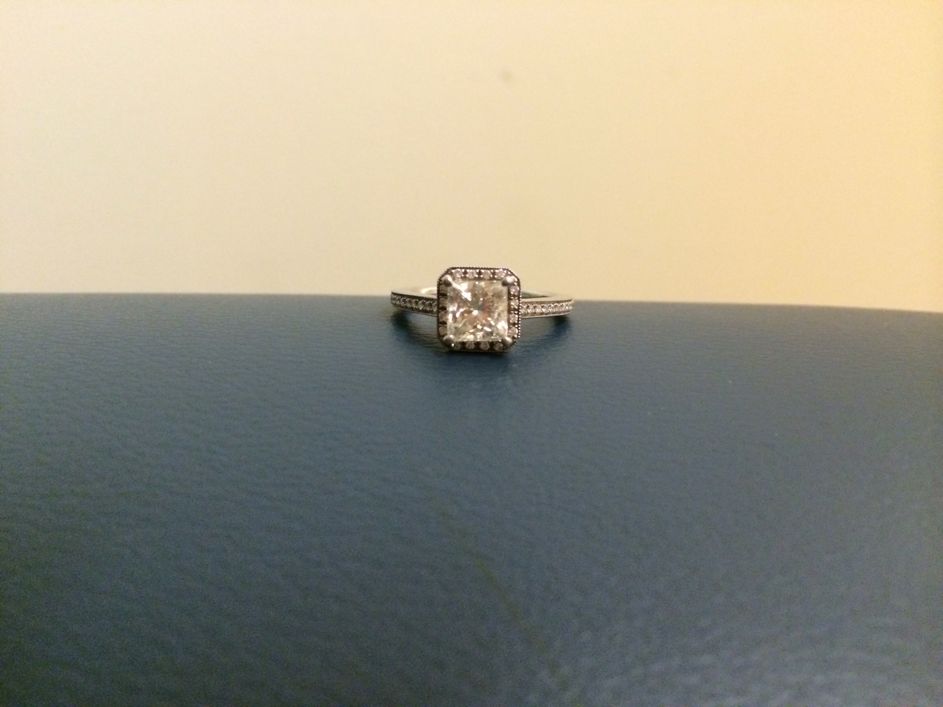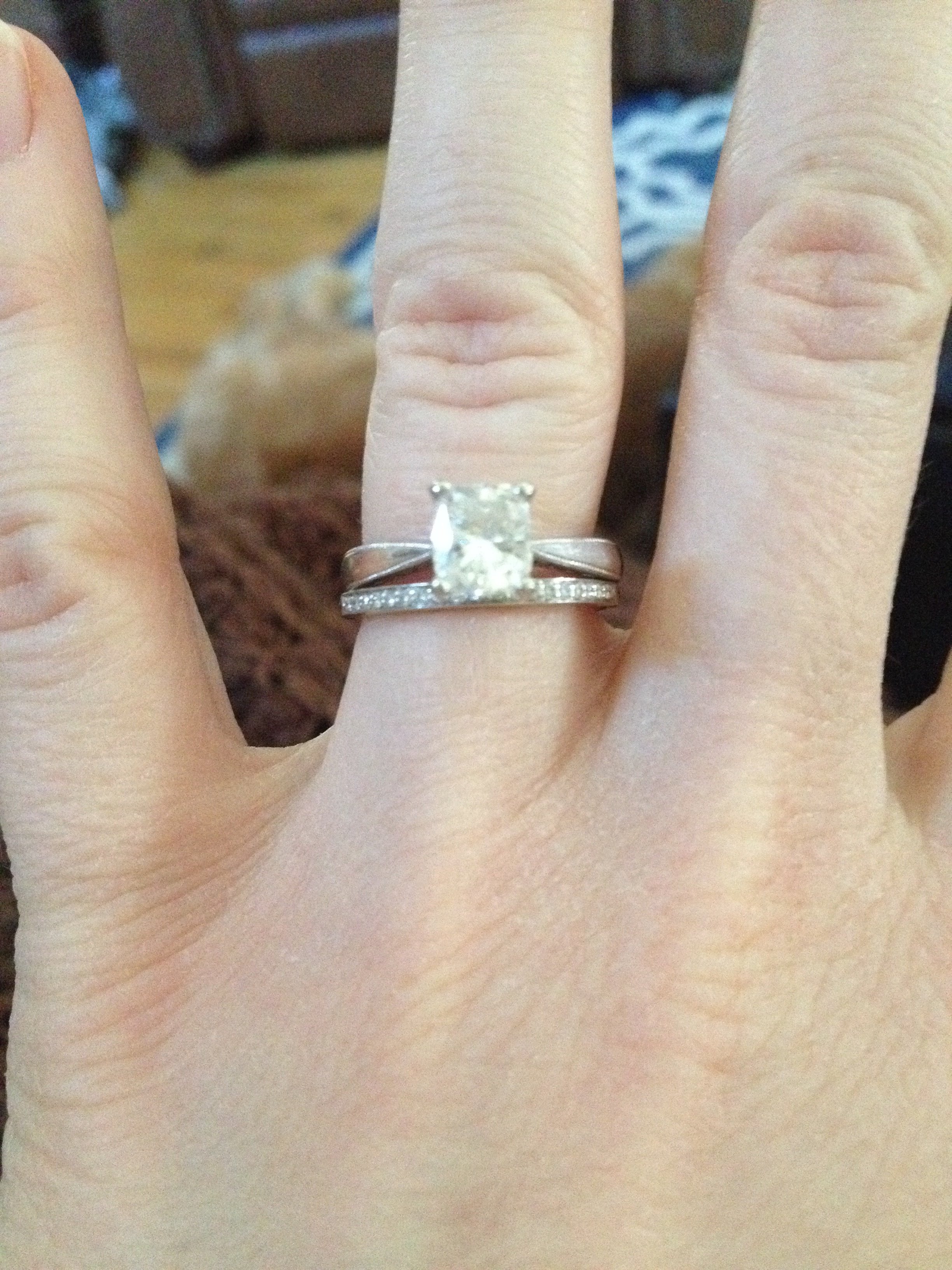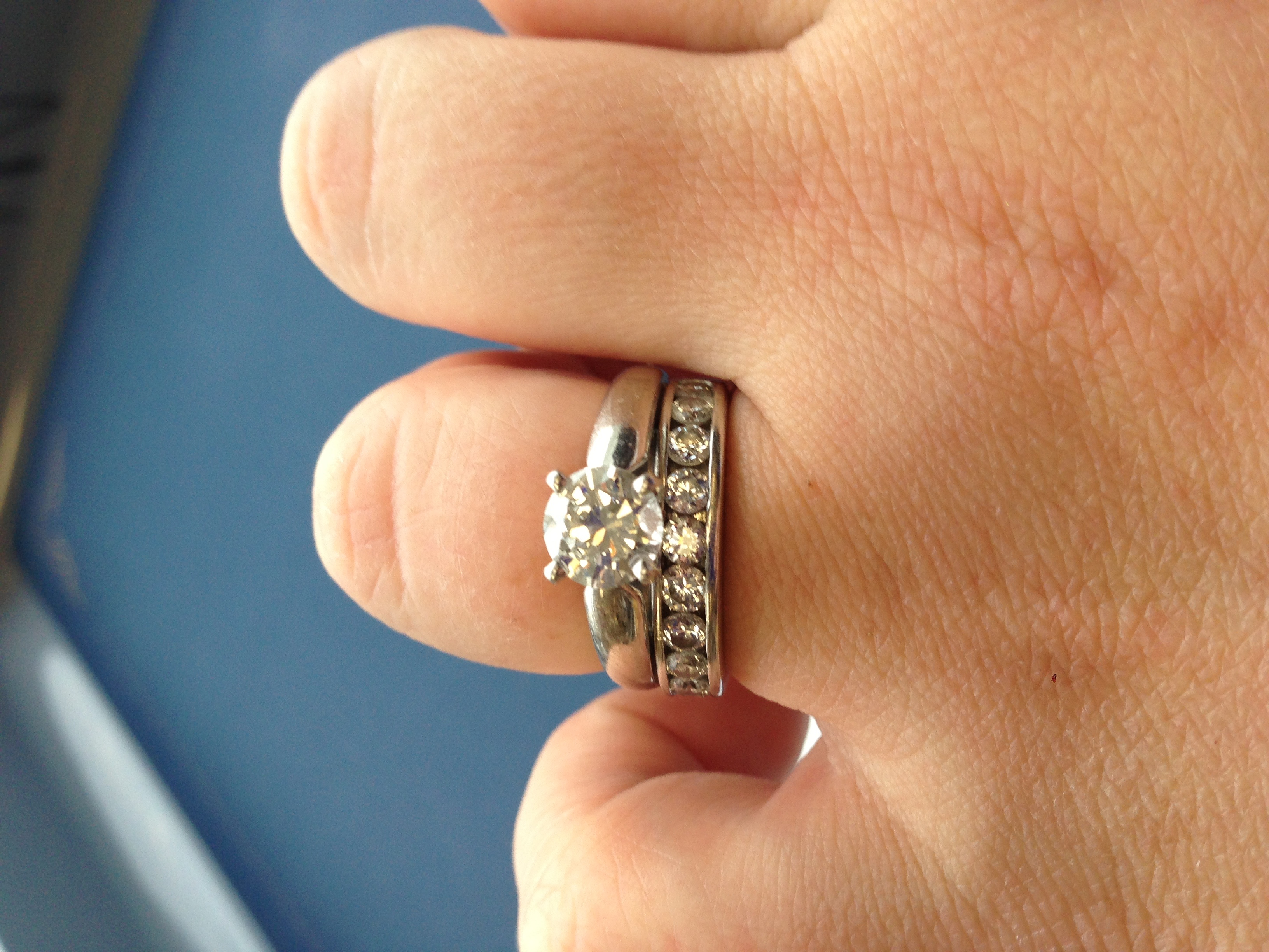 I had no choice but to replace my center stone. The night before our first wedding anniversary my stone vanished. We were standing up in the wedding of our good friends. It was there during the ceremony...since I remember it sparkling under the church lights. Then I didnt look at it again until around 11pm that night. And the stone and the setting/prongs were gone. We have no idea when or where. I never hit my hand on anything...it was a wedding reception (and I was mostly sober). I cried...a lot. DH "thats ok, thats why we have insurance and a warranty" My very drunk friend was crawling on the floor with a flash light looking for it. We figure some little kid got a shiny new rock or it when out when they swept the floor after a balloon drop. Thankfully we had the lifetime warranty with the jeweler...they replaced it with a slightly bigger stone, no questions asked.
