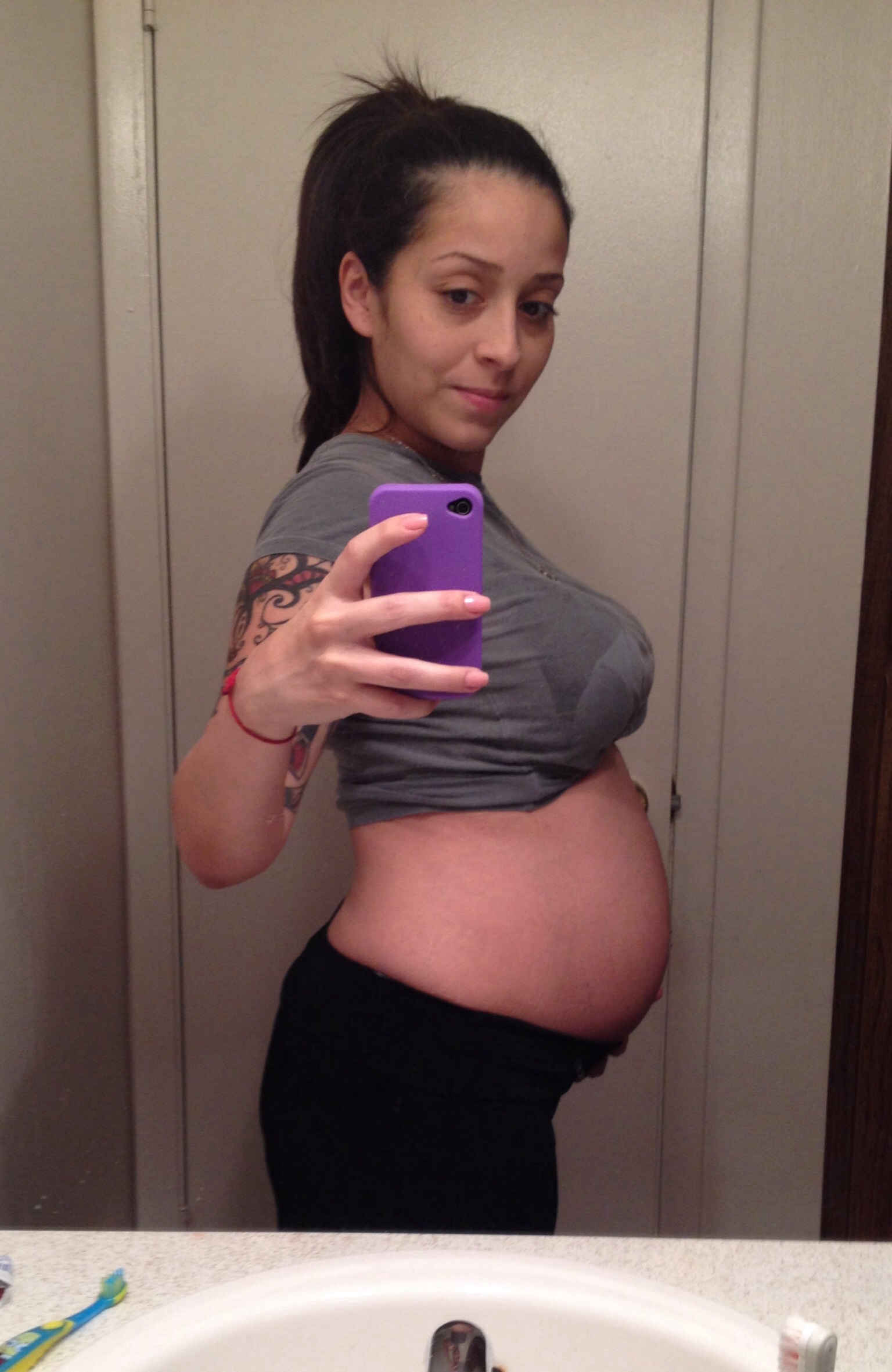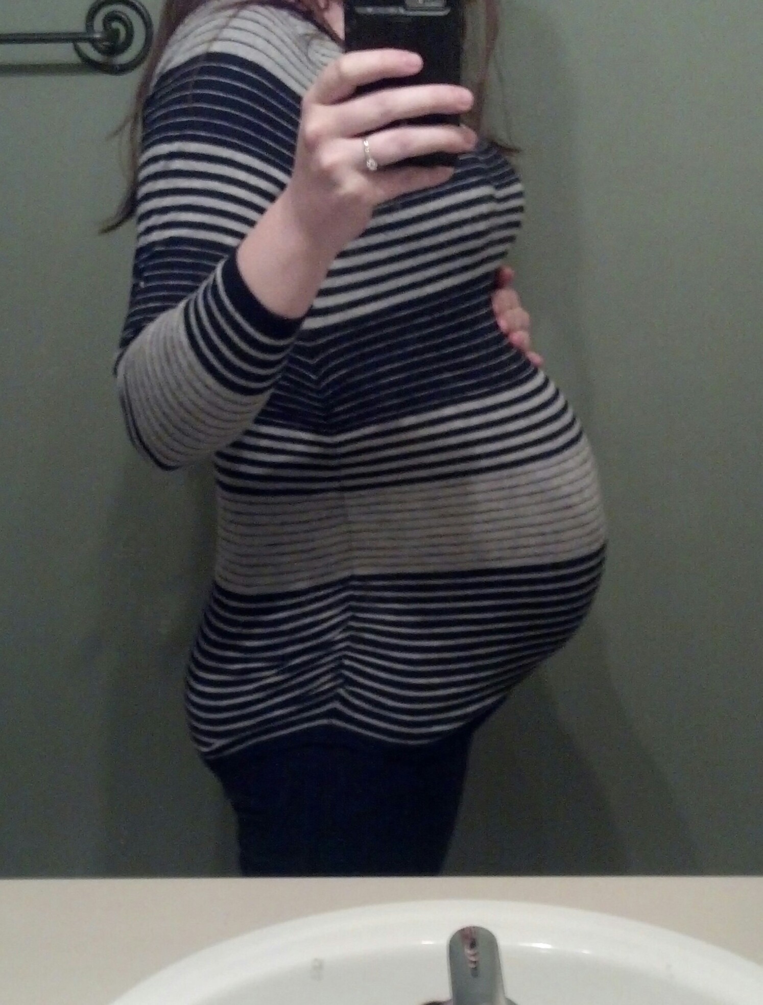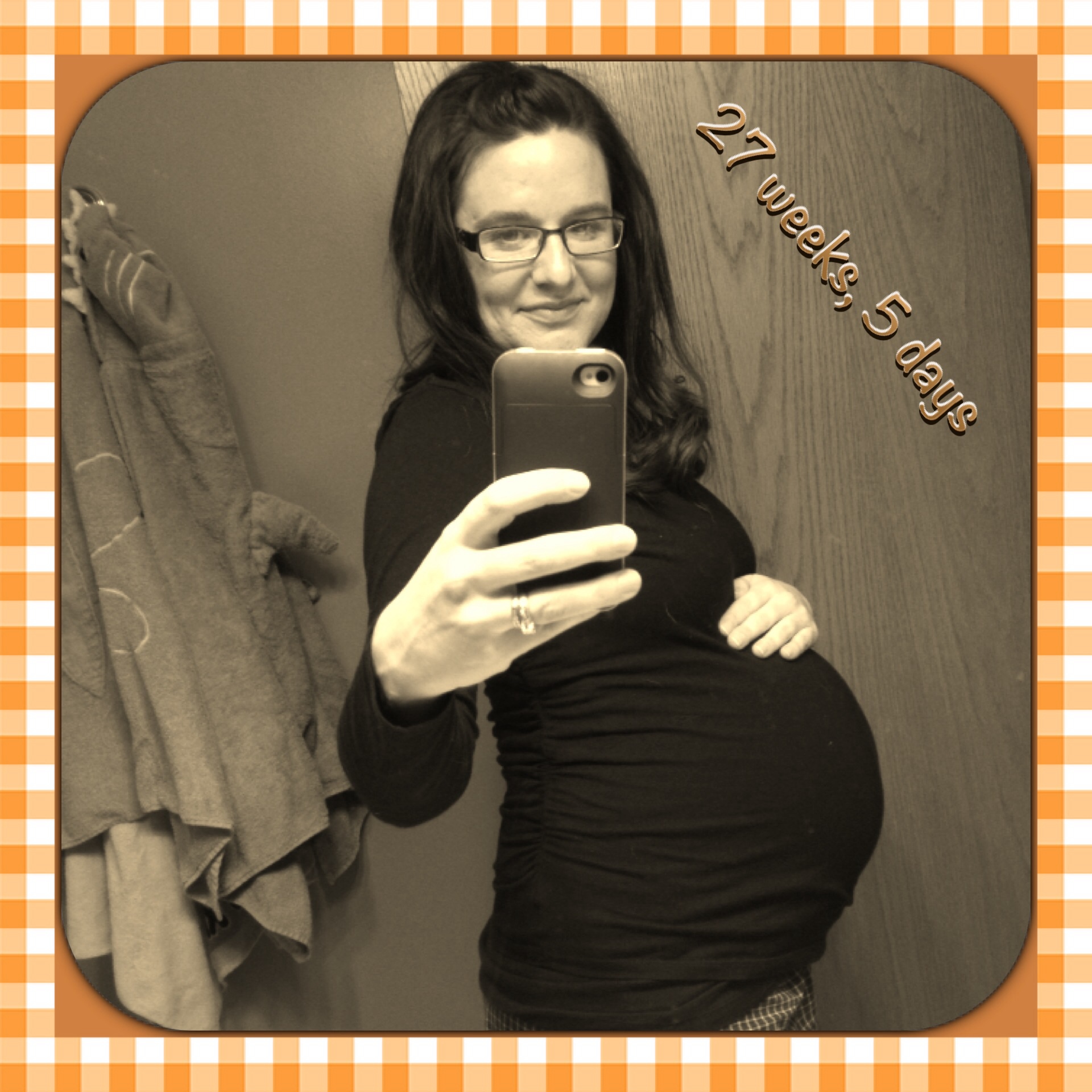 27 weeks 1 day with my little nameless baby boy. My SO surprised me with a cake for 13 weeks left and we had a celebration night- definitely much needed it was sweet of him can't wait til after my glucose test tomorrow and have a GIANT piece! Everyone looks fabulous im loving our bumps