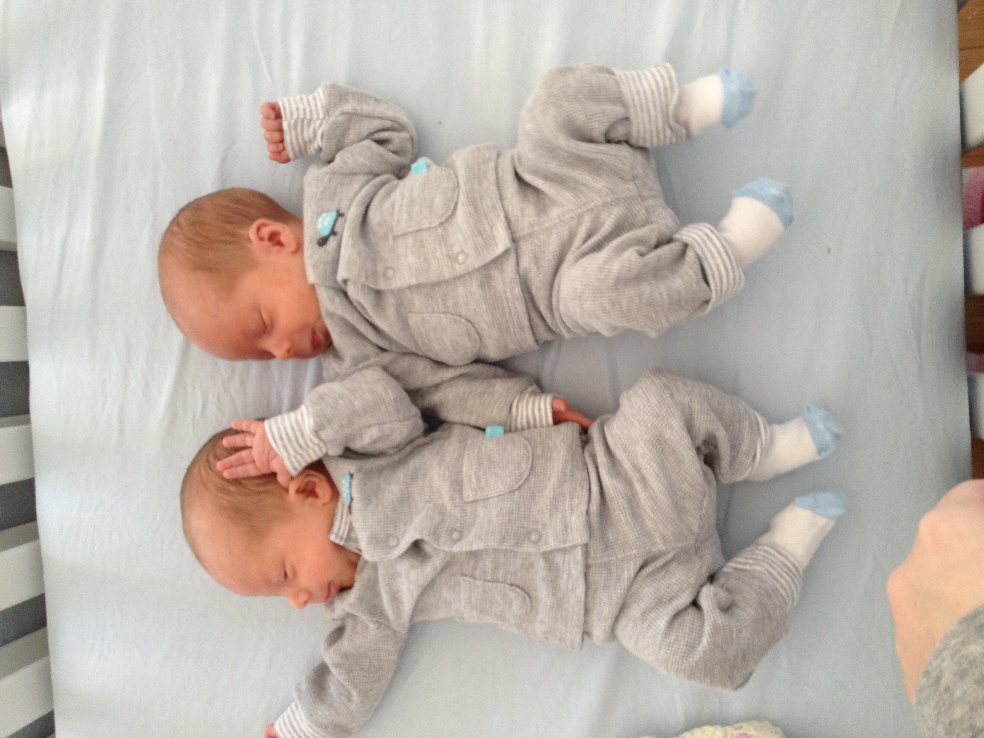 The boys were three weeks yesterday. I was finally cleared to drive after the c section but still can't lift much. I can't go anywhere alone because I can't lift the boys and their car seats at the same time yet. Sleeping is rough becUse they get up to eat every two hours now and it takes an hour and a half to complete the cycle, leaving me maybe a half hour of sleep each time lol. They are getting big and have a check up tomorrow and I am betting Cole is nearing 6 pounds. Max is probably 5 1/2 at least. They are having some reflux and gas issues so we switched the formula to see if that helps. Still learning to tell them apart lol. Right now we are going with different color hats still.