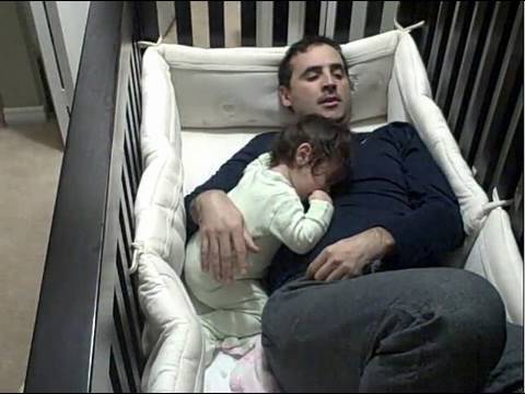 Father gets into crib