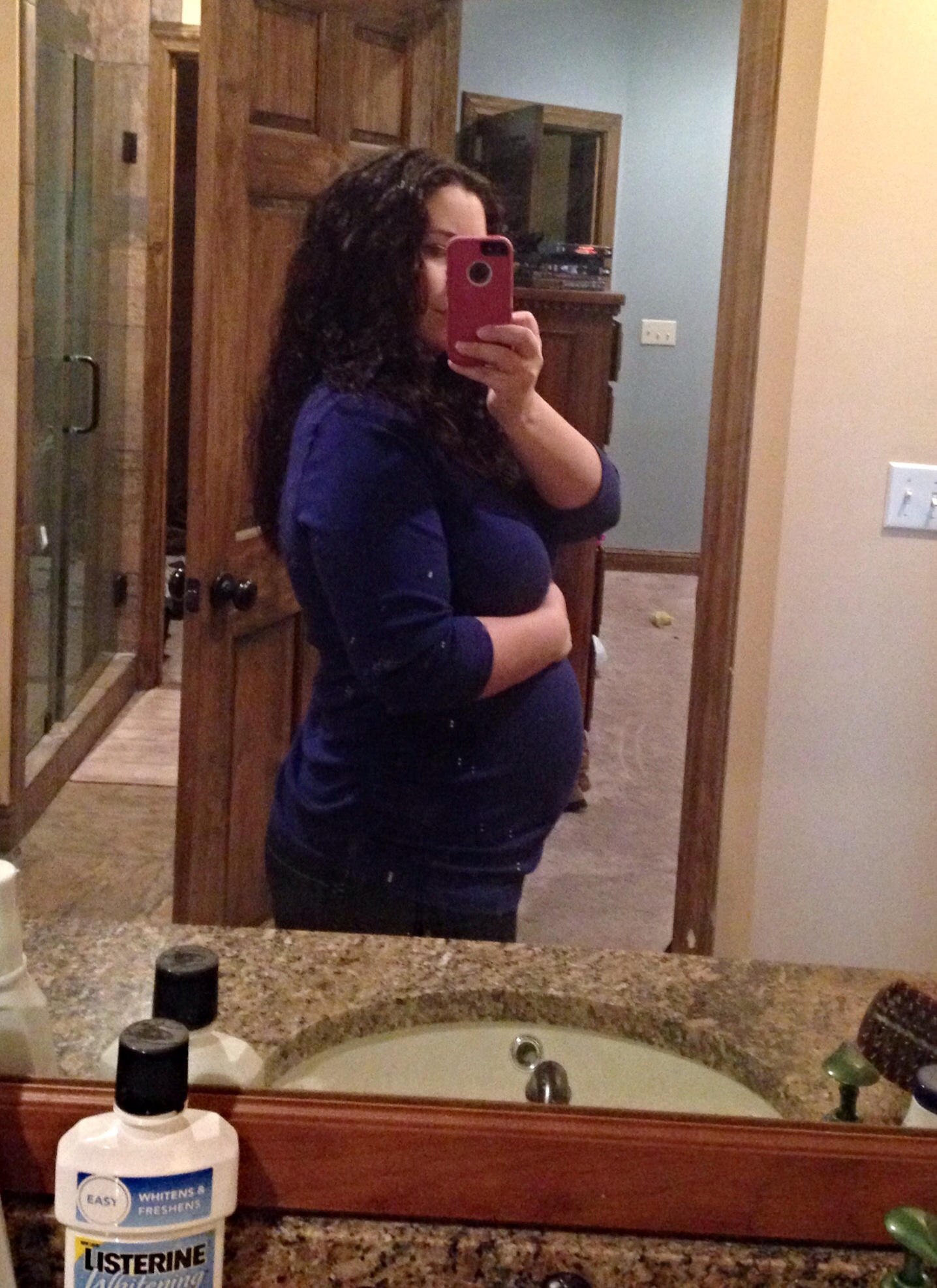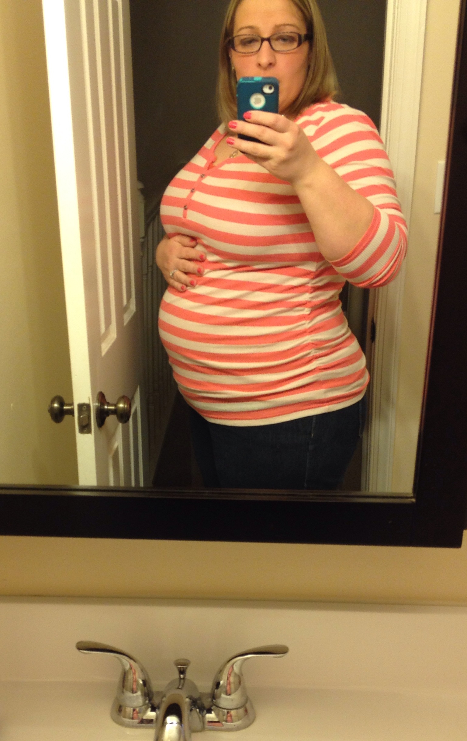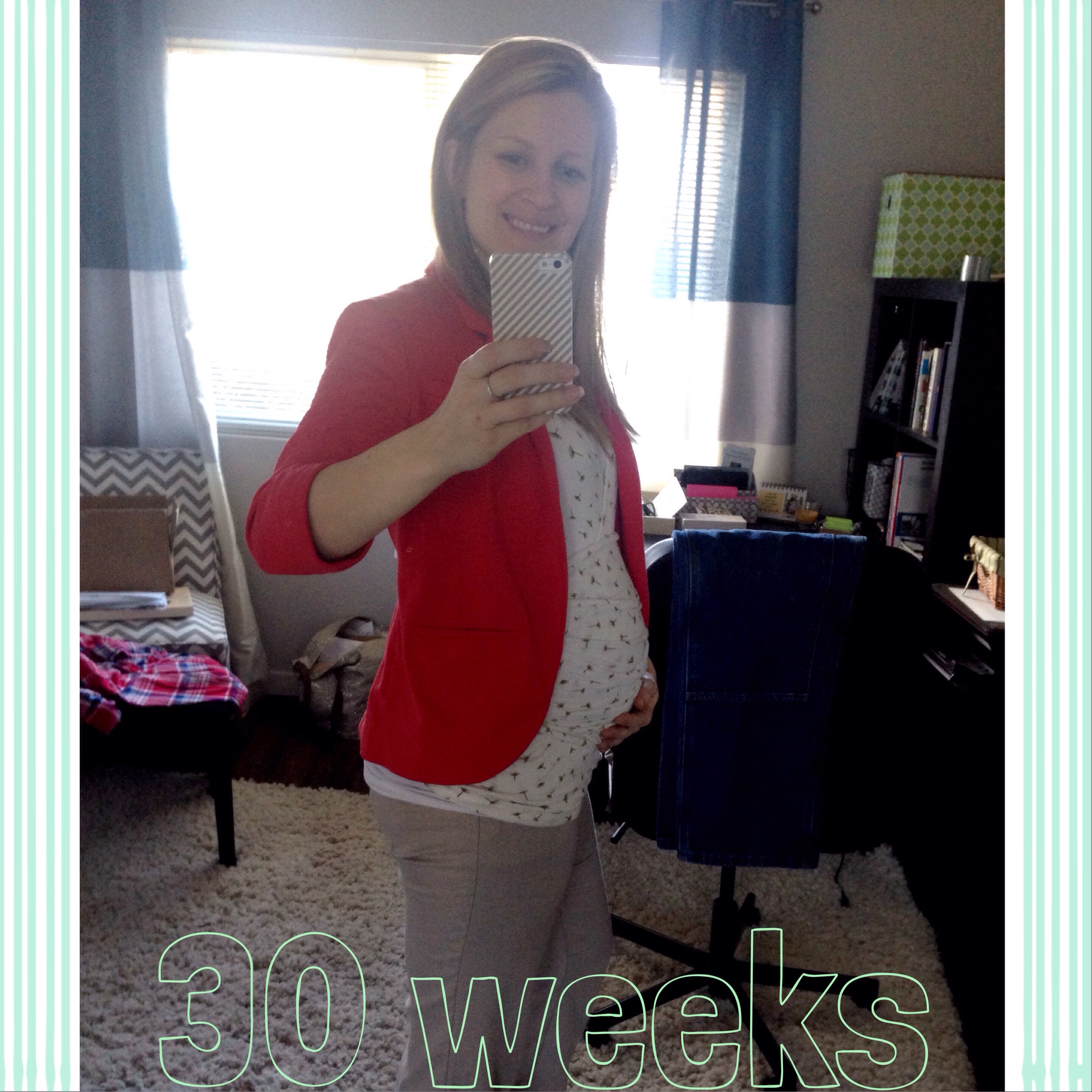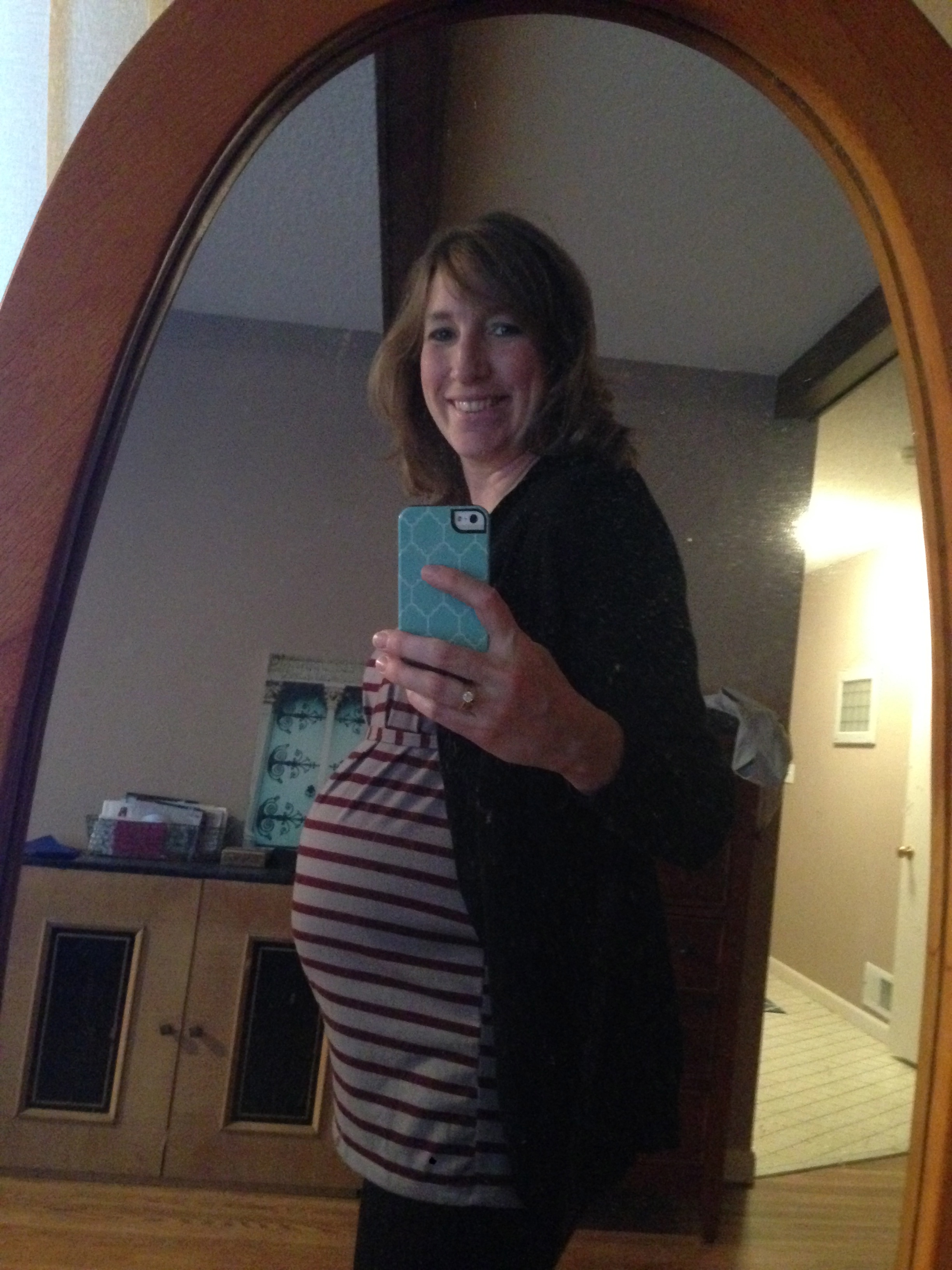 I forgot to take a jammie picture last night and "Lori in the morning" should not be documented on the internet. So, no gold star for me. But here I am today at 31w6d. I have definitely popped more in the past week. I'm blaming it on baby having a growth spurt and not me eating a package of lemon oreos.