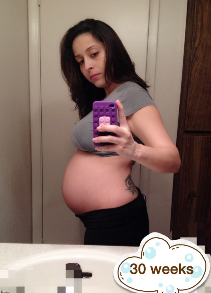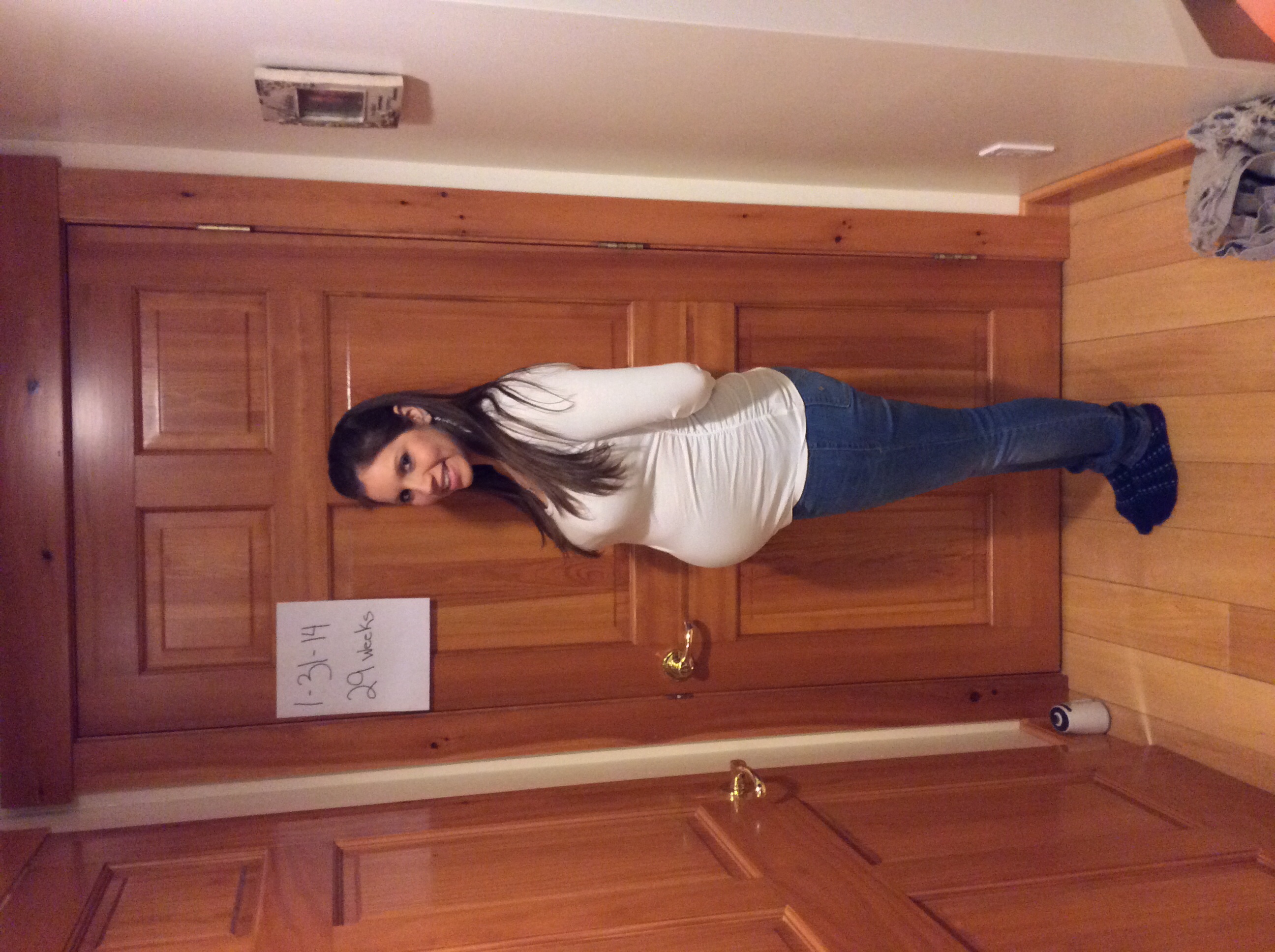 Taken Sunday 28 weeks. If he wasn't kicking me in the ribs is swear little guy is growing on my butt and thighs! I'll be so glad when we're not buried in snow and I can get out and walk again!!