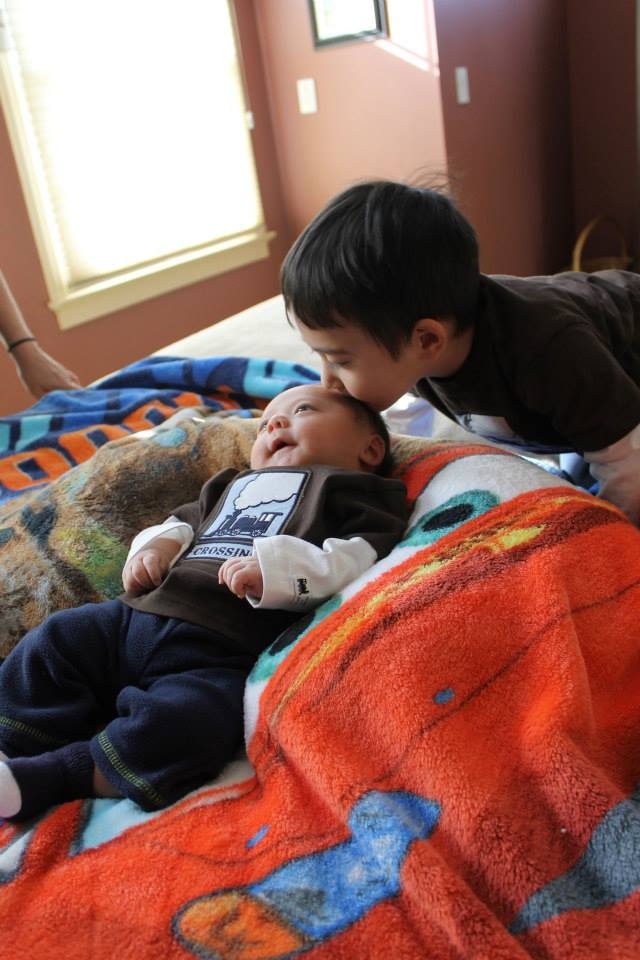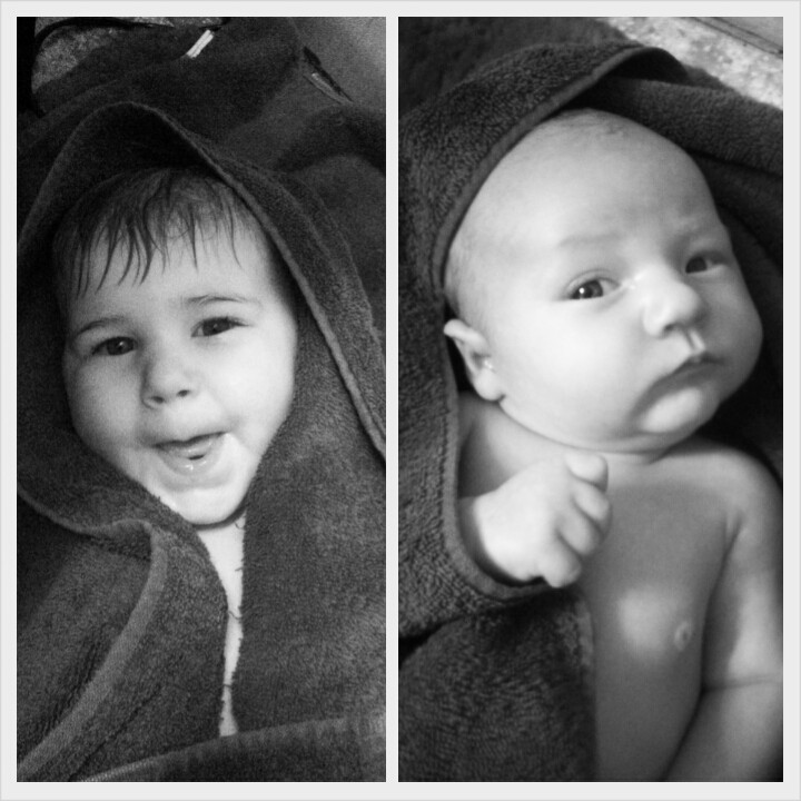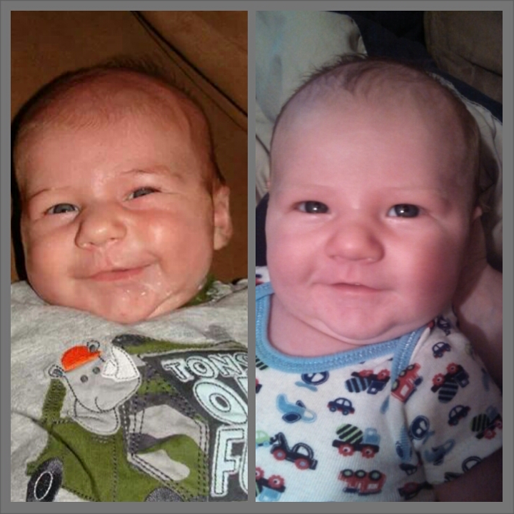 As you all probably noticed, I can't aw just one of by babies ;-) one is a pic of the boys fresh out of the bath tub taken last week. Other is side by side pics of the boys, both taken at 5 weeks. ds 1 is on the left, lo on the right.