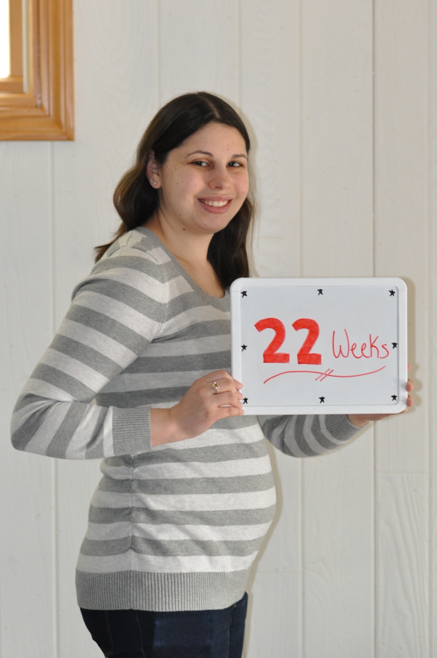 I actually remembered to take a picture before I got to work today...no tampon dispenser in the background, woohoo! 22+4...I think this little guy has hit a growth spurt!