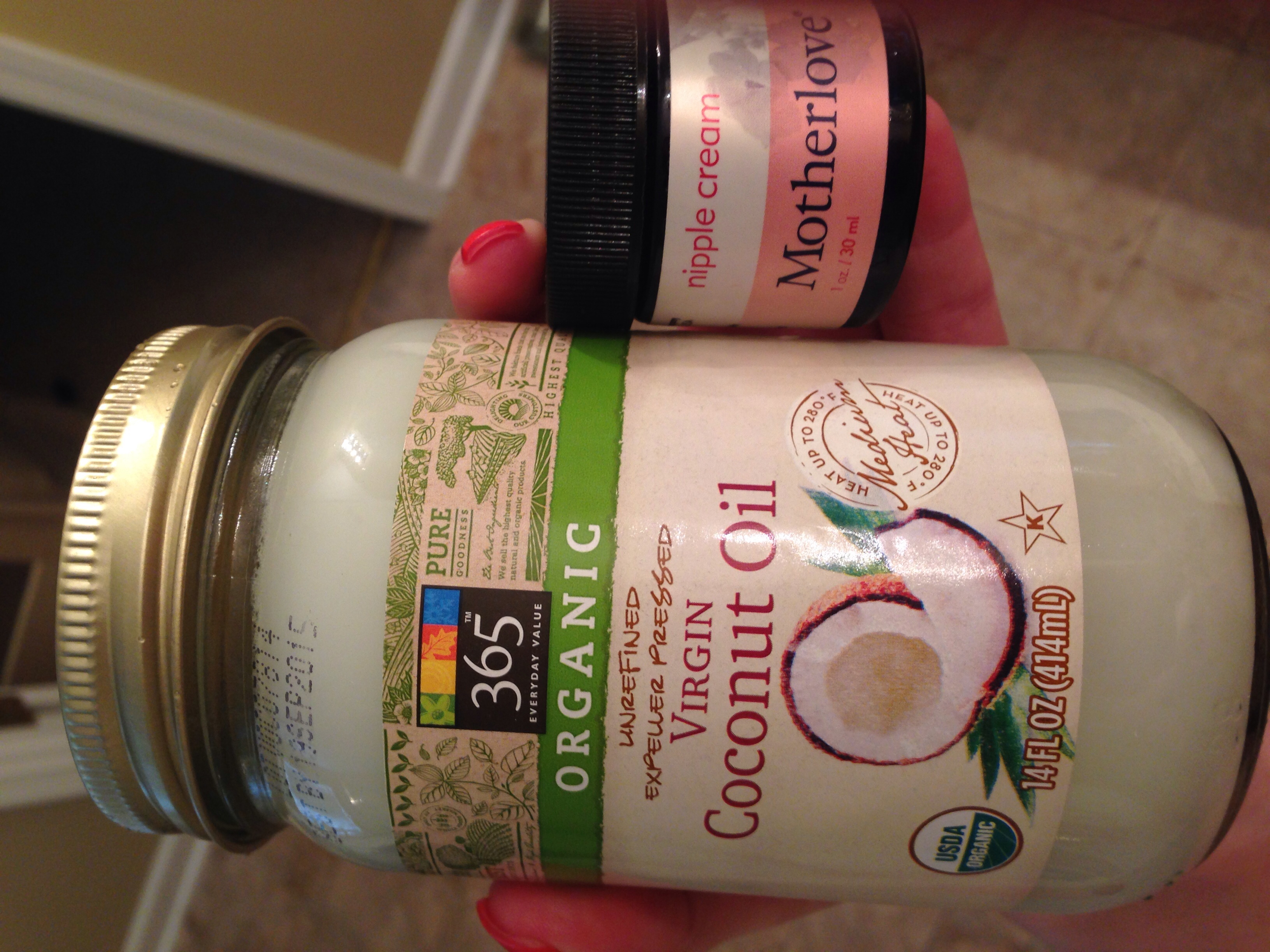 This is really stupid, but that's what we're here for, right? I bought new coconut oil (is this one better, @ColleenSwerb ?) and I also use the Motherlove nipple cream. Do I use these together? Or separately? If together, does it matter which one I apply first?