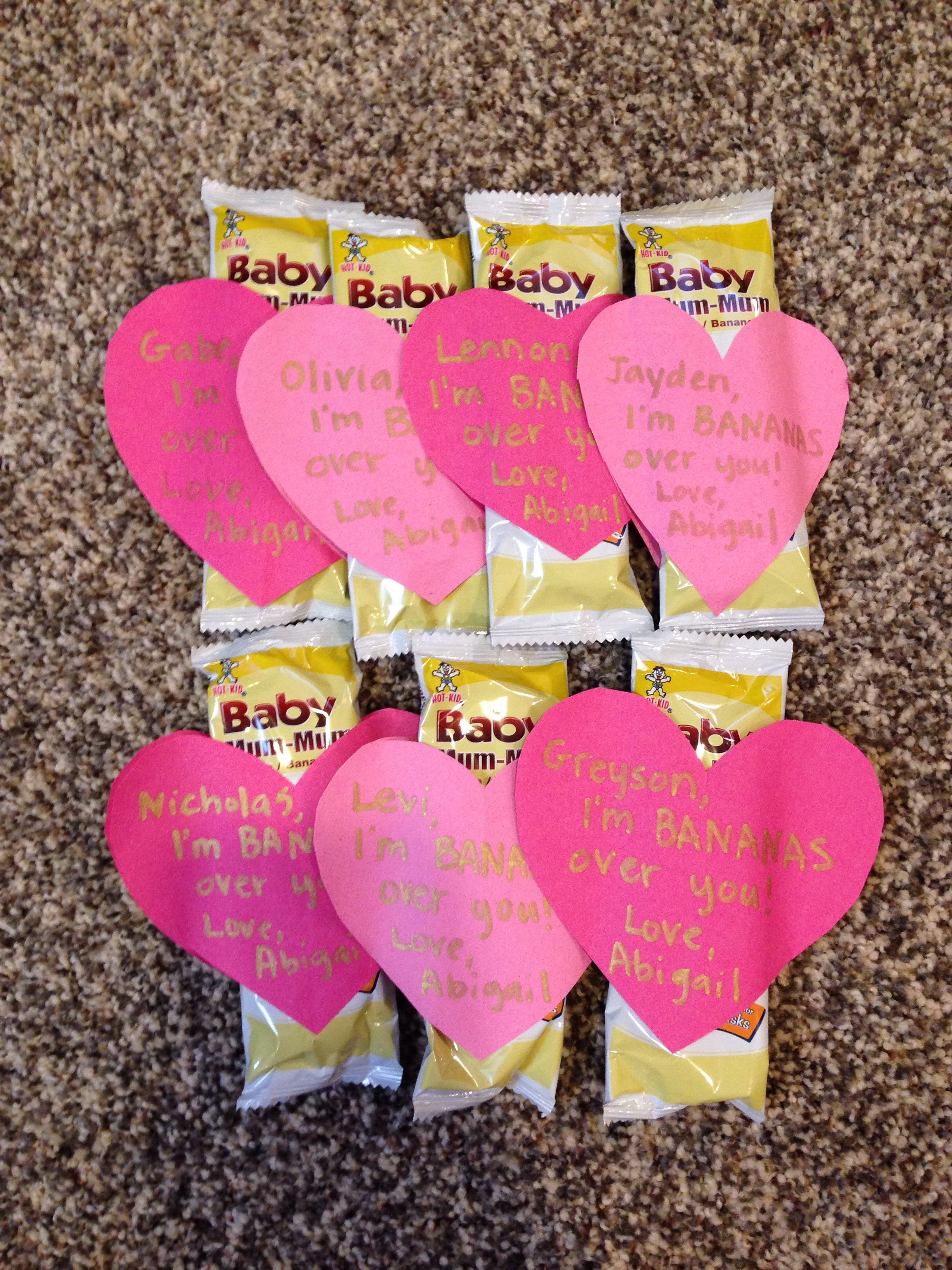 Abby's banana Mum Mum valentines for her buddies at school!image