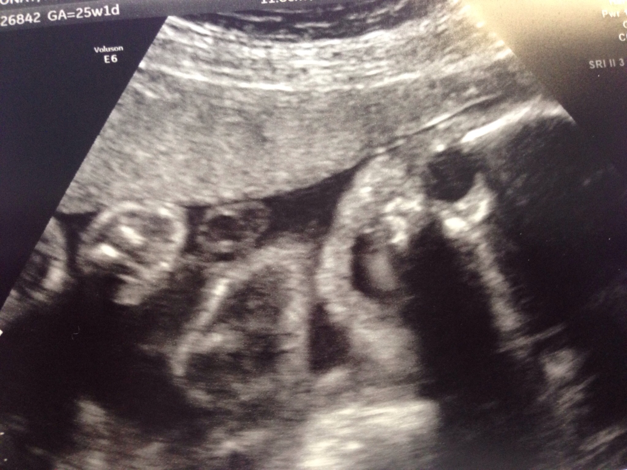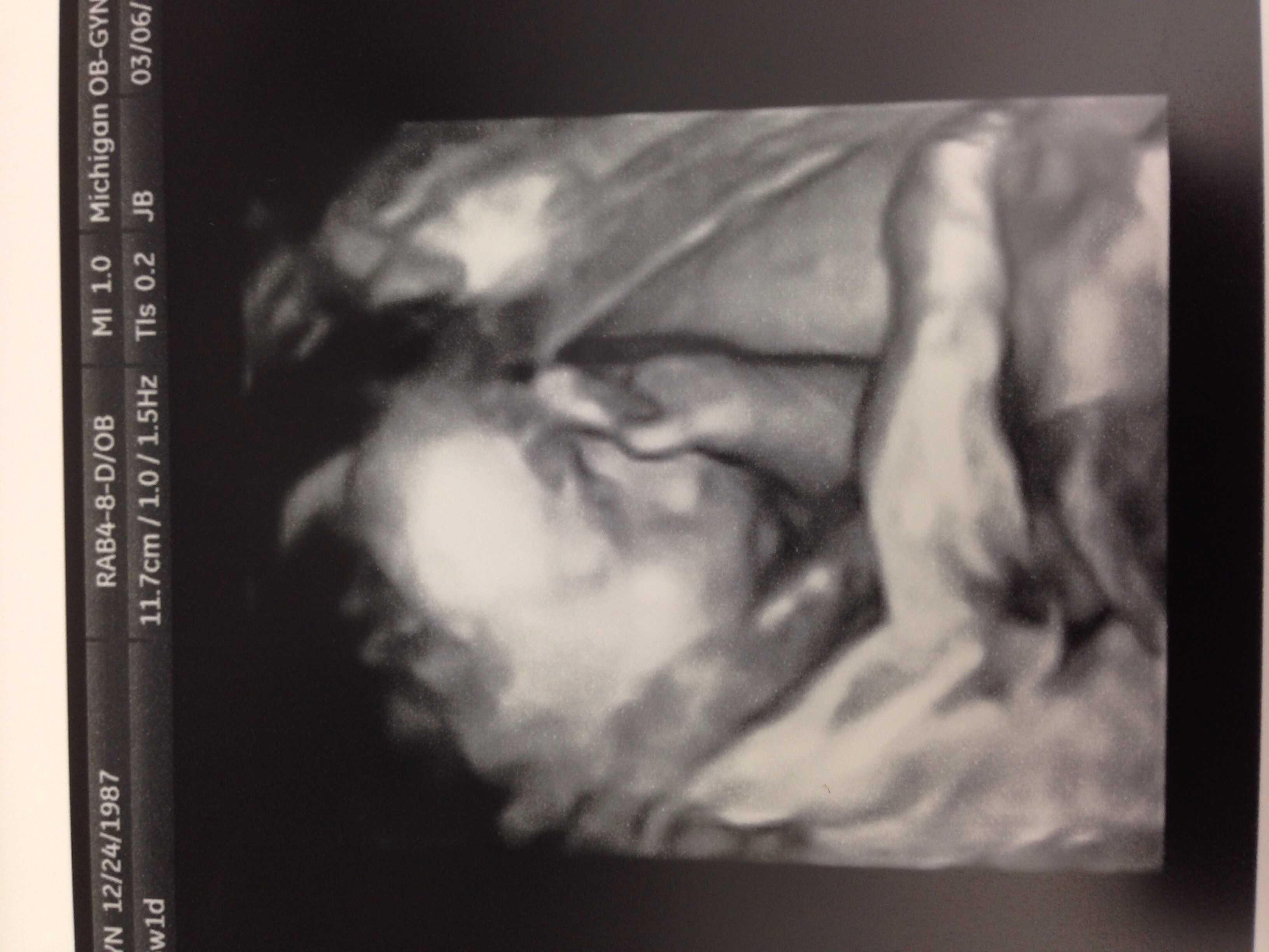 Had my 25 week check up and u/s due to my husbands heart defect and couldn't see the heart well enough last time. So far everything looks good but still can get good pics of the heart because baby is on his stomach. Oh well just means another u/s in a few weeks. Along with my glucose screen. Here's a pic of my little guy