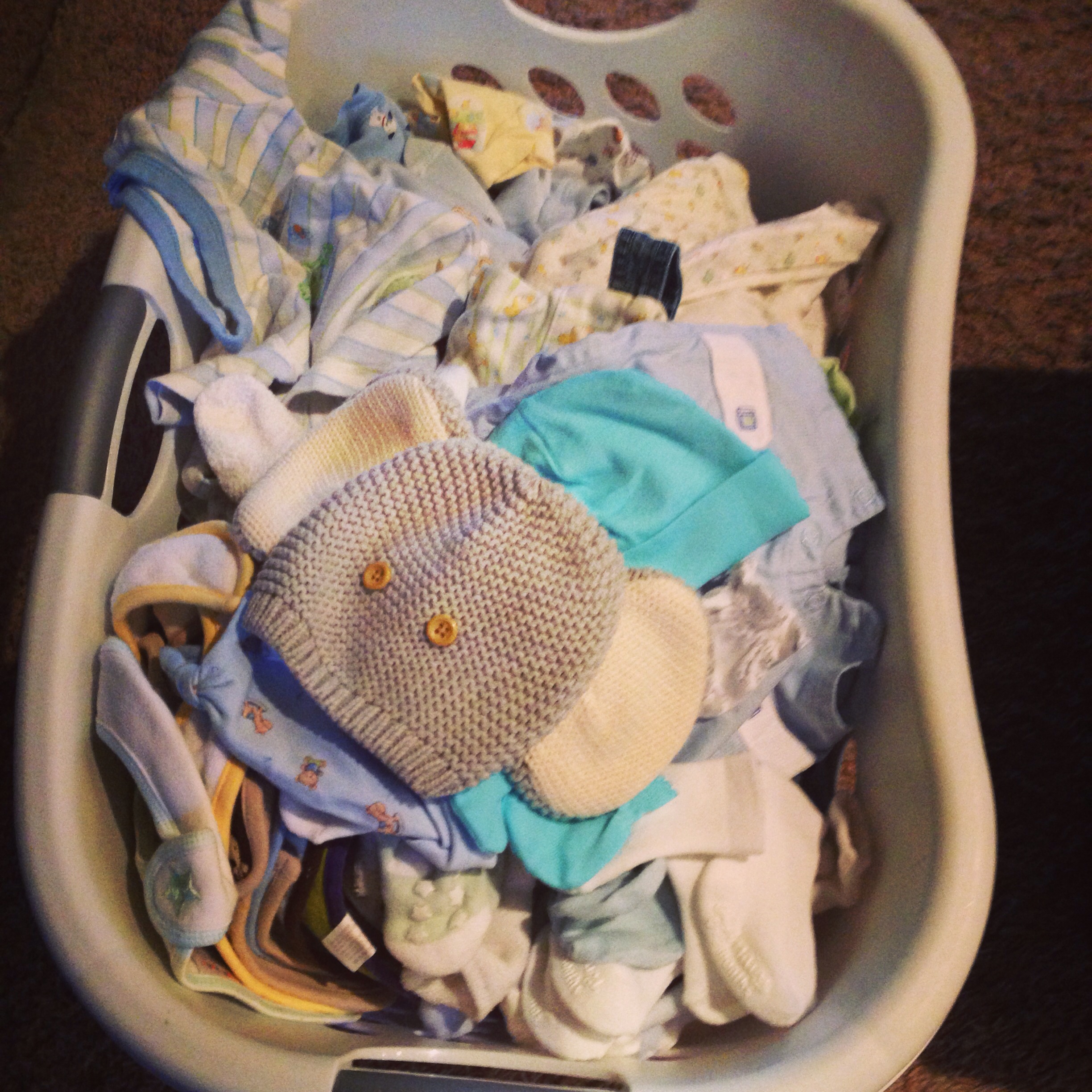 • Nah. I've been washing clothes (most are hand me downs from his older brother). So much to be done, might as well do it while you can still bend over. :-)