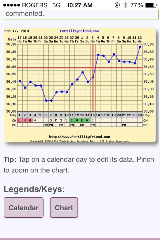 Anyways I am currently 10dpo (ovulation was a little later this month) and this morning my temp spiked to 36.87. I have never seen it higher than 36.78. Point of the story, since I O'd about 3 days later in my cycle than the past couple of months, should I just be assuming that AF should be about 3 days later in my cycle too?