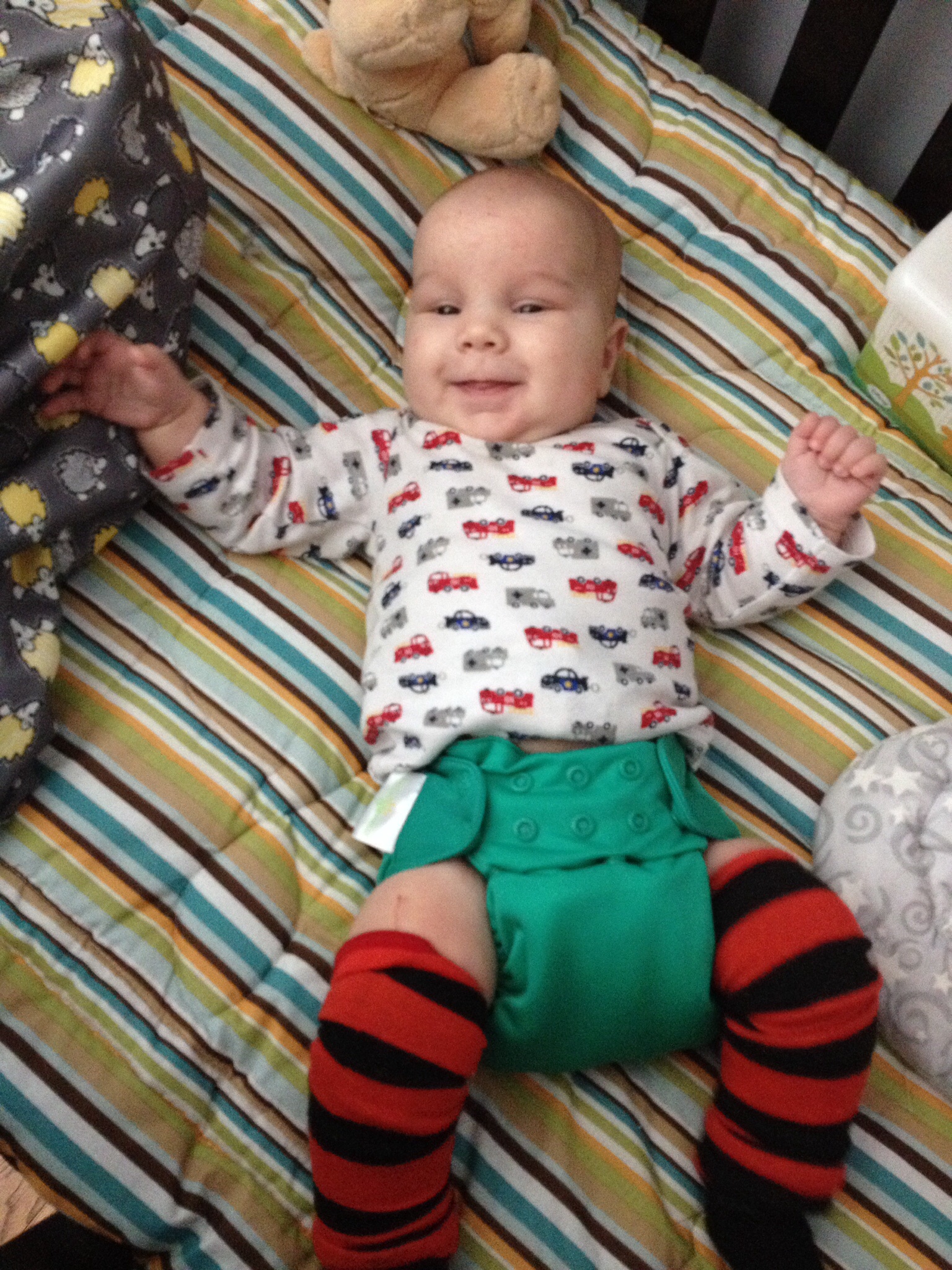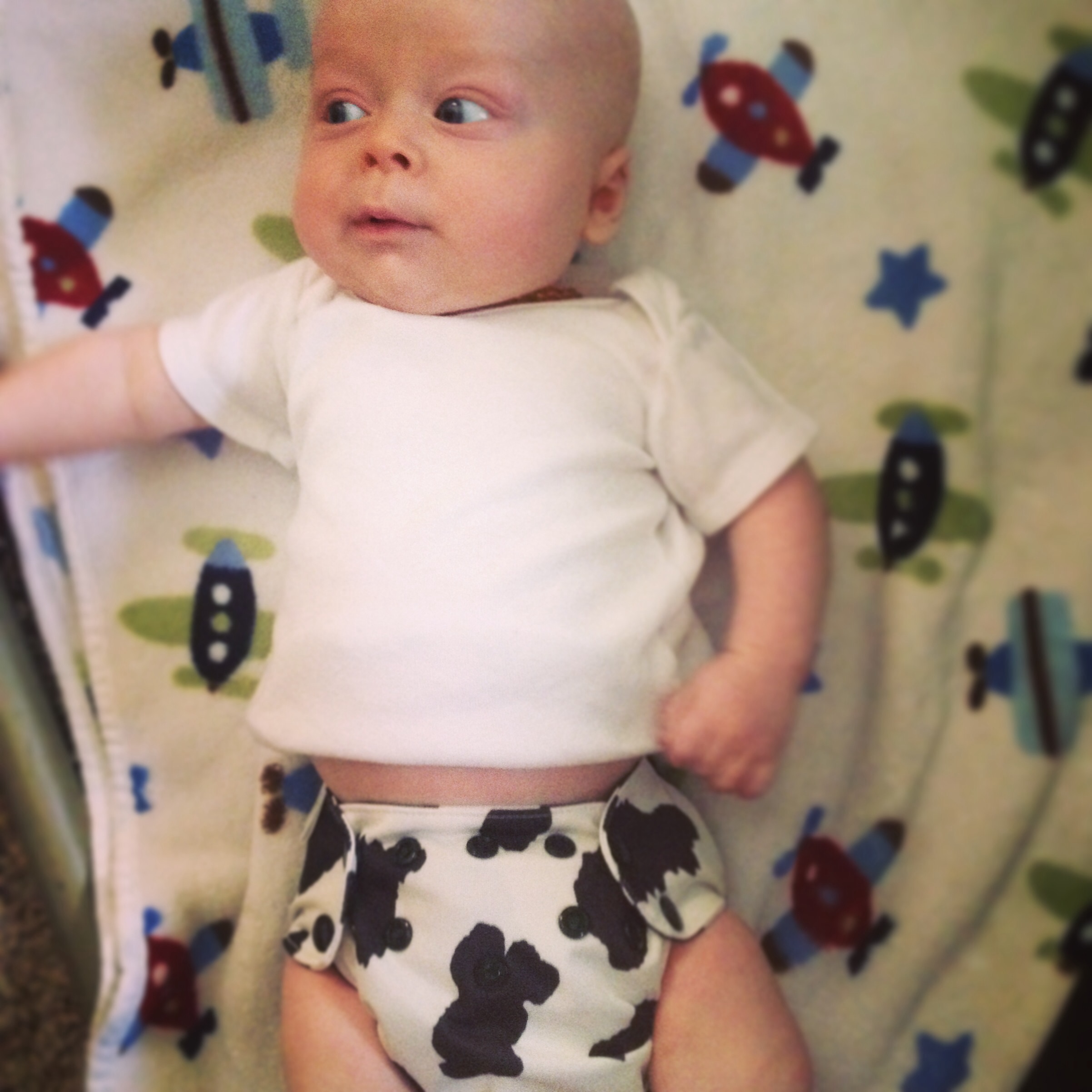 Here he's showing off his good ole basic Freetime. I bought a dozen of these in this color on clearance when I was pregnant, before I realized that I would want different pretty colors and patterns. I was nesting, so just wanted it all taken care of. Little did I know that I'd want a variety, not just a cheap basic option.