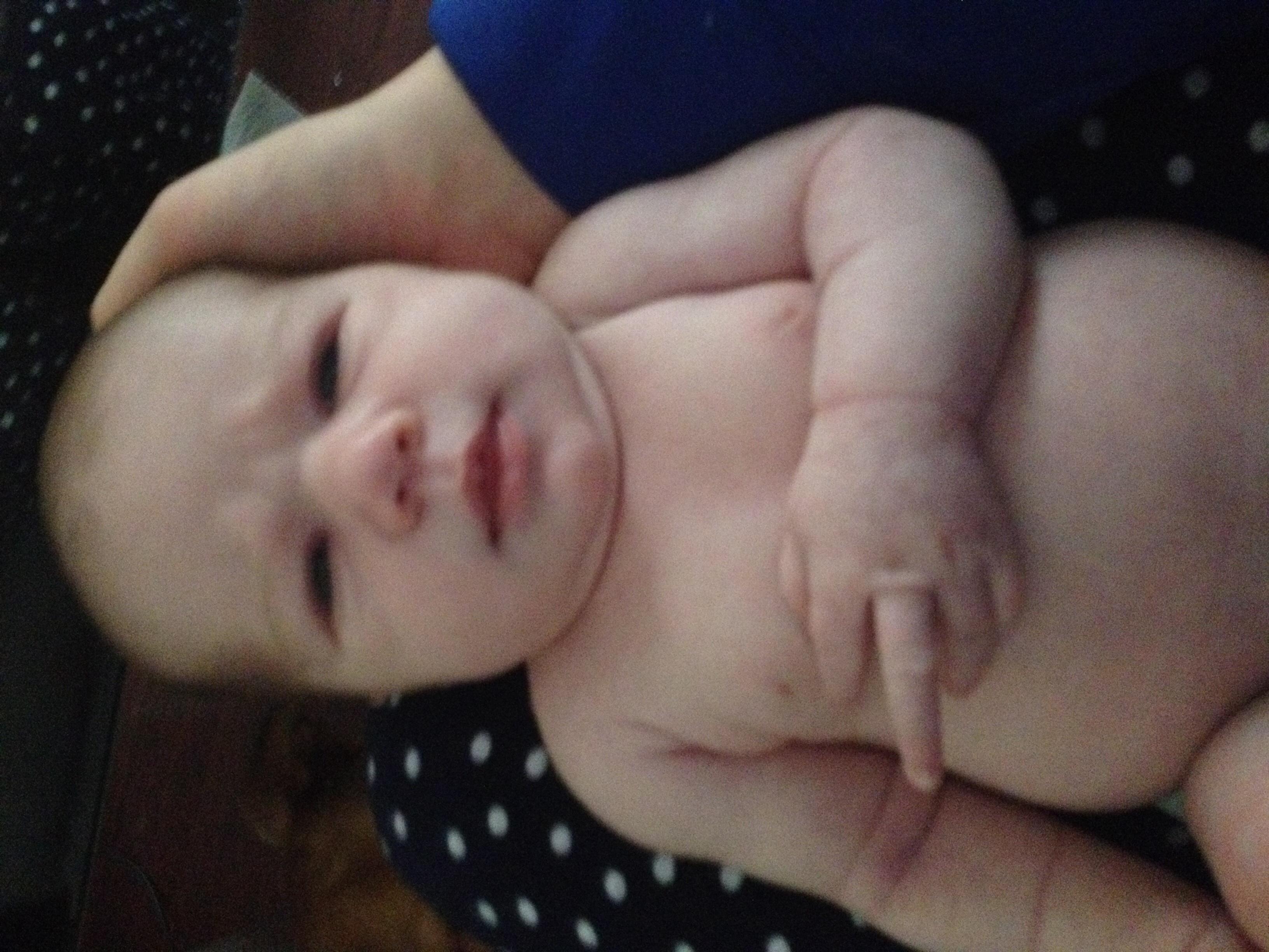 Piper was not happy after her sponge bath this morning! And she learned to give the finger at 8 days old!