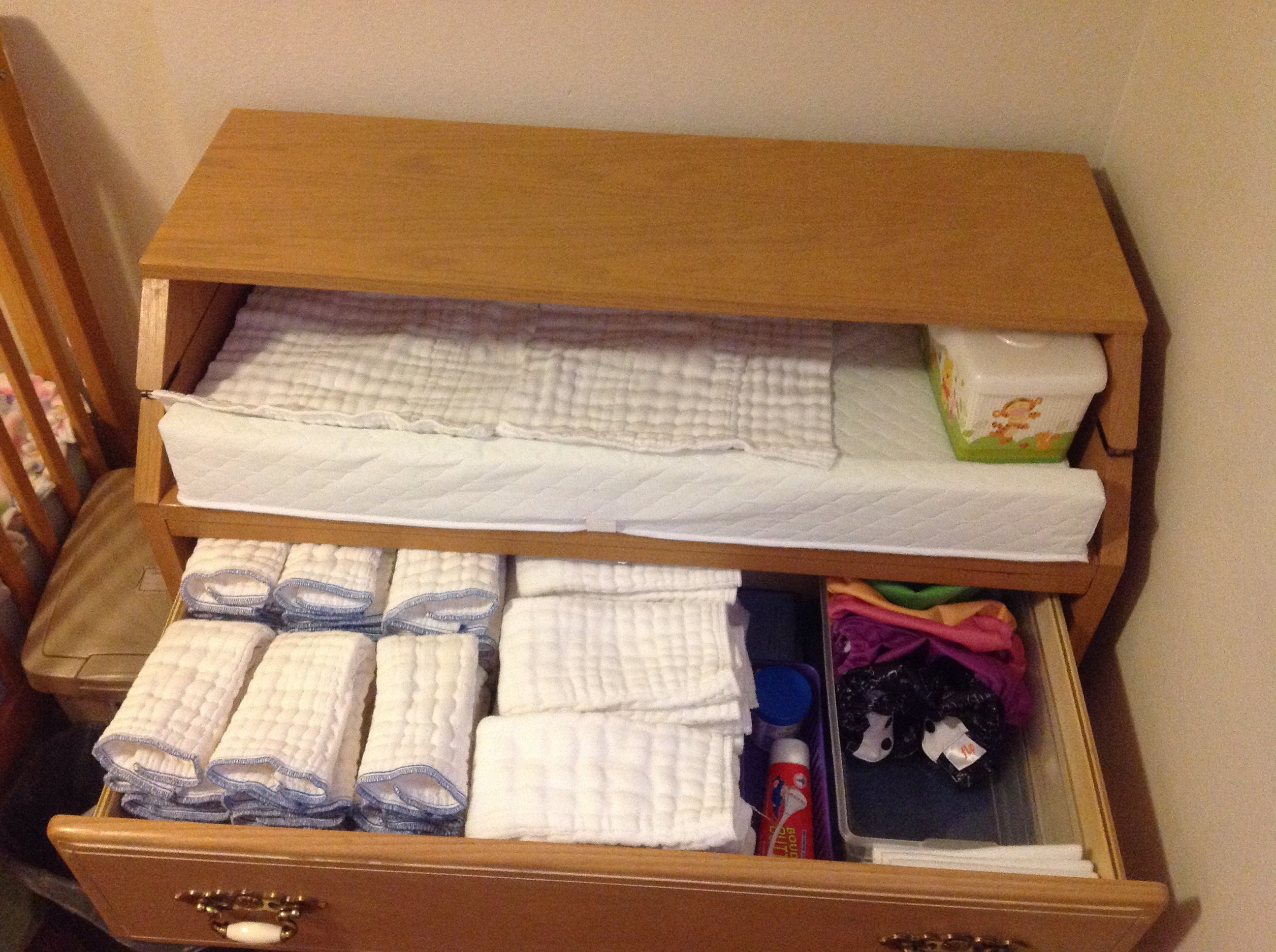 I'm finally going to participate in fluff Friday! I have wanted to show off my stash for a while, but I never got around to taking pics. The first pic is of my Flip covers. Yes that is all I have right now. We are tight on money (one of the reasons we are CDing) so I went minimalist on my stash. The second pic is of my changing table setup. I don't have any cute fluffy butt pictures today but hopefully I will for Friday next week! (Sorry sideways iPad pics and apparently the second one wants to be upside down, grrrrrr)