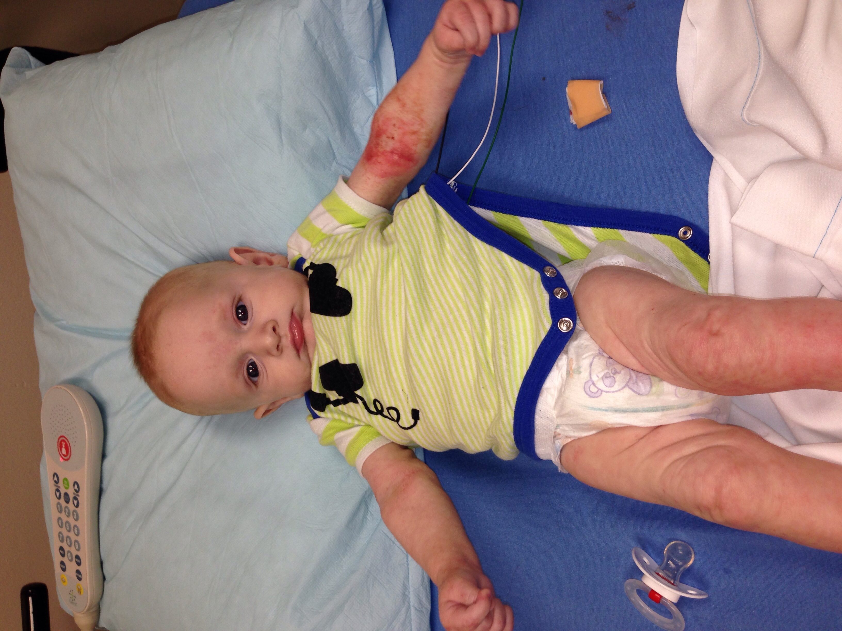 So far all his blood work they did at the ER is normal. They are waiting on the pedi to send over the results from last week. He is having an allergic reaction to the adhesive on his IV so they took it out after his fluids were done.