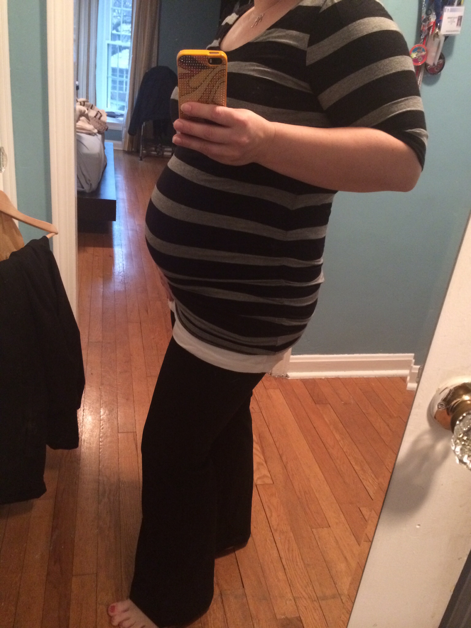 A little late, and questionable date lol! We had our visit to have an amino/echo done (everything is okay!) and the doctor moved up my due date a week. This was taken a couple of days ago. I love the sass of all the August mommies though, so staying right here!