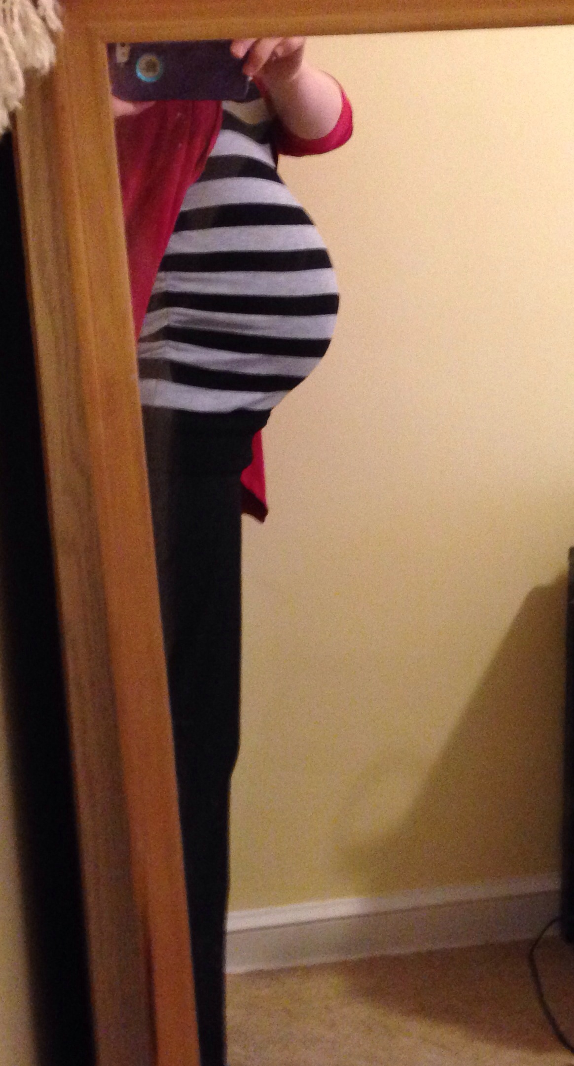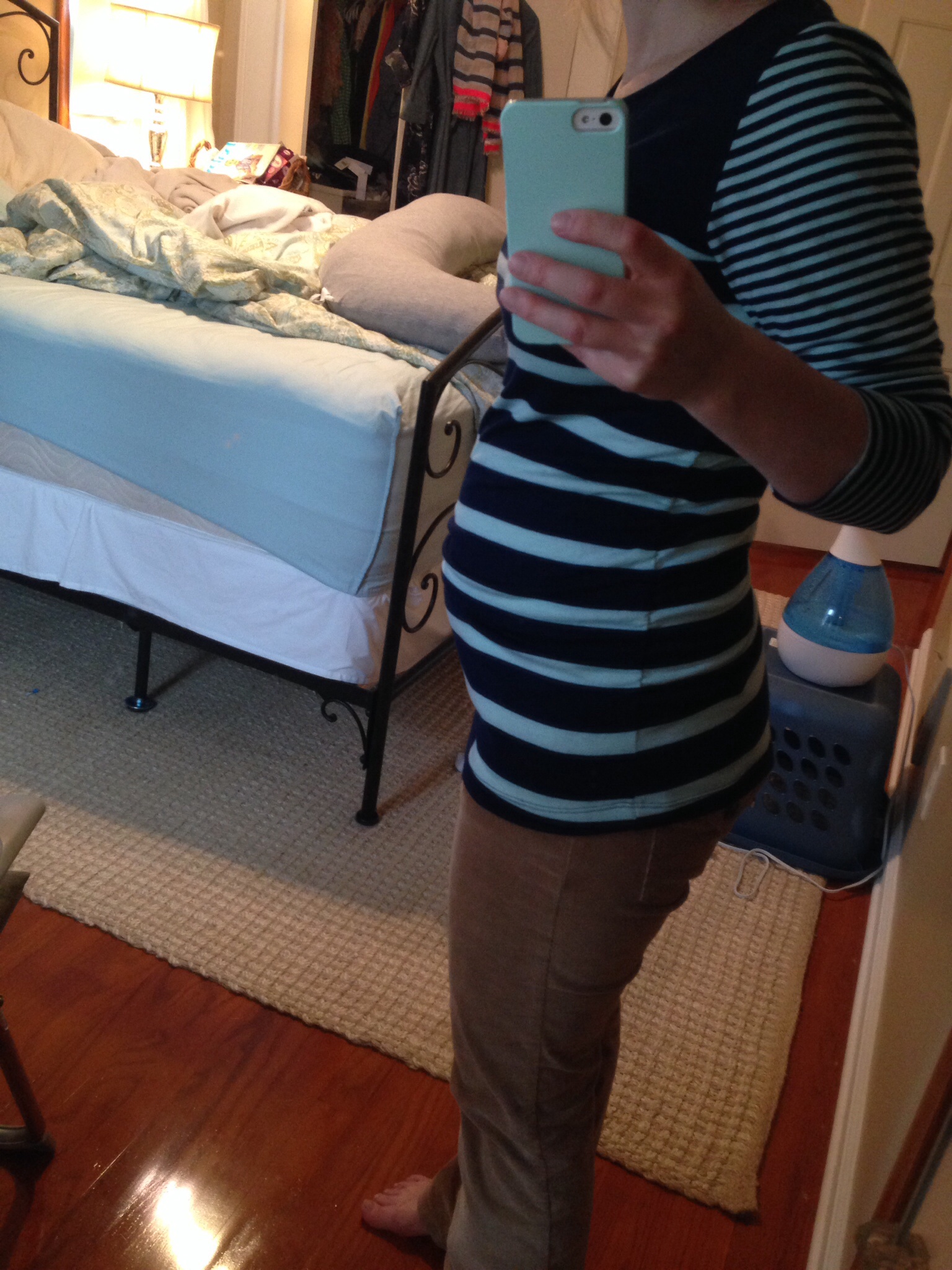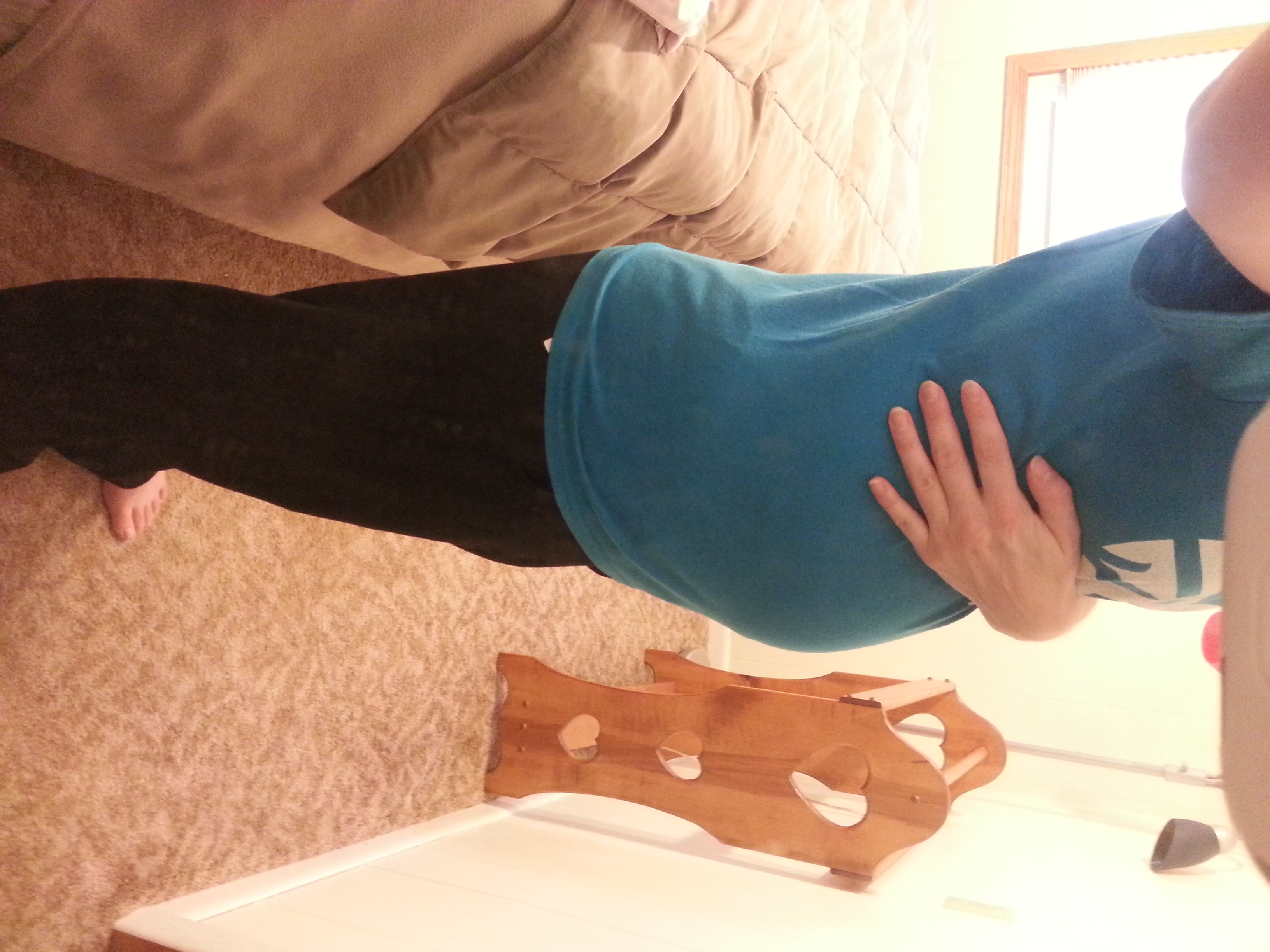 We're joining the bump shots party early, because with twins, the belly is getting bigger already.