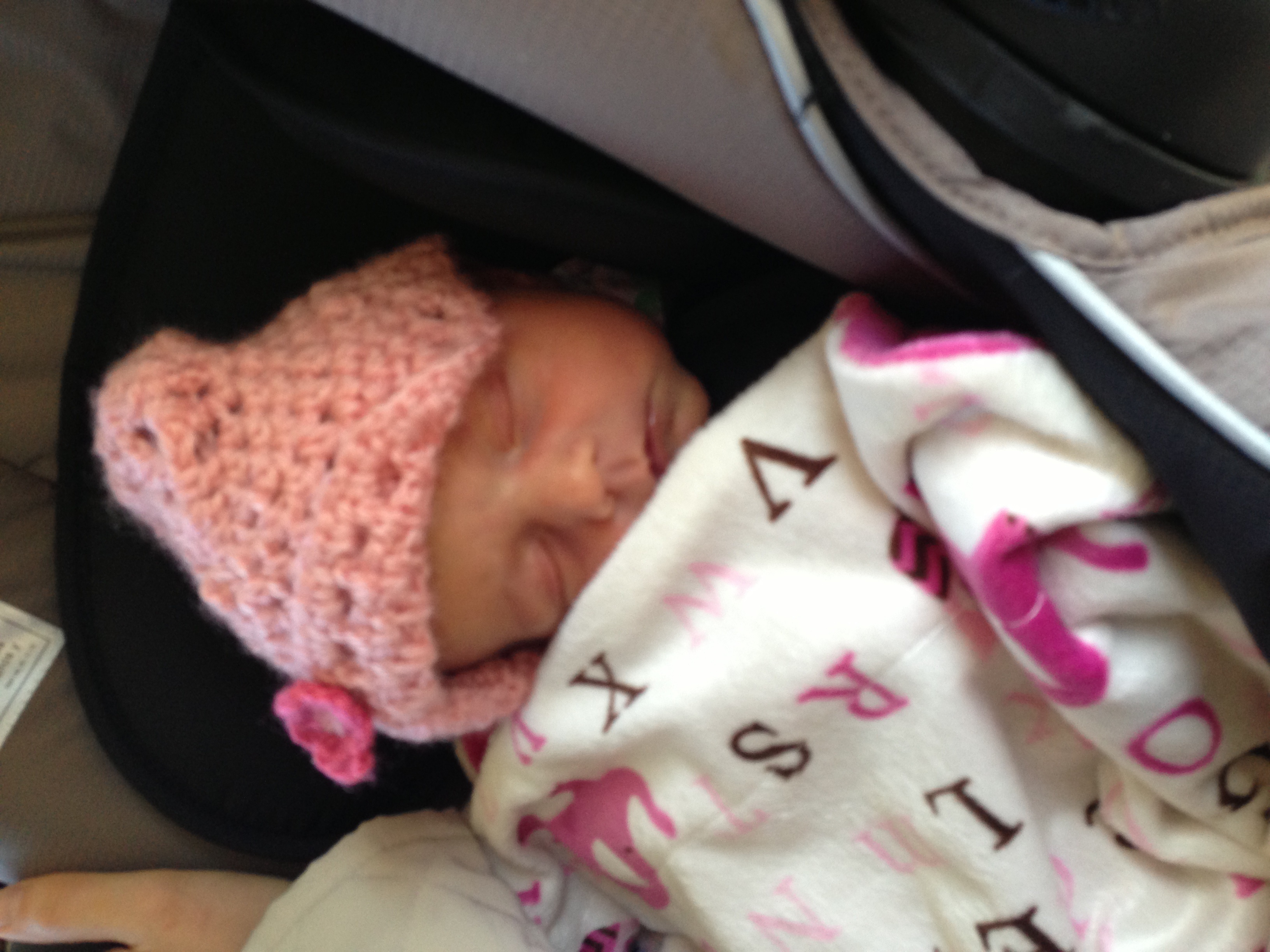 We got to the hospital around 6:10am and they checked to see if LO was still breech. She was so they prepped me for a c-section. I was scared to death of the spinal (it wasn't bad at all). My husband couldn't be in the room during the spinal. He said it was the longest 10 minutes of his life. When he got into the delivery room he sat by my head and waited. Shortly after our baby was out at 7:34am on March 23. She got to pick her own birthday! I couldn't have been happier. She is the most beautiful thing I have ever seen.