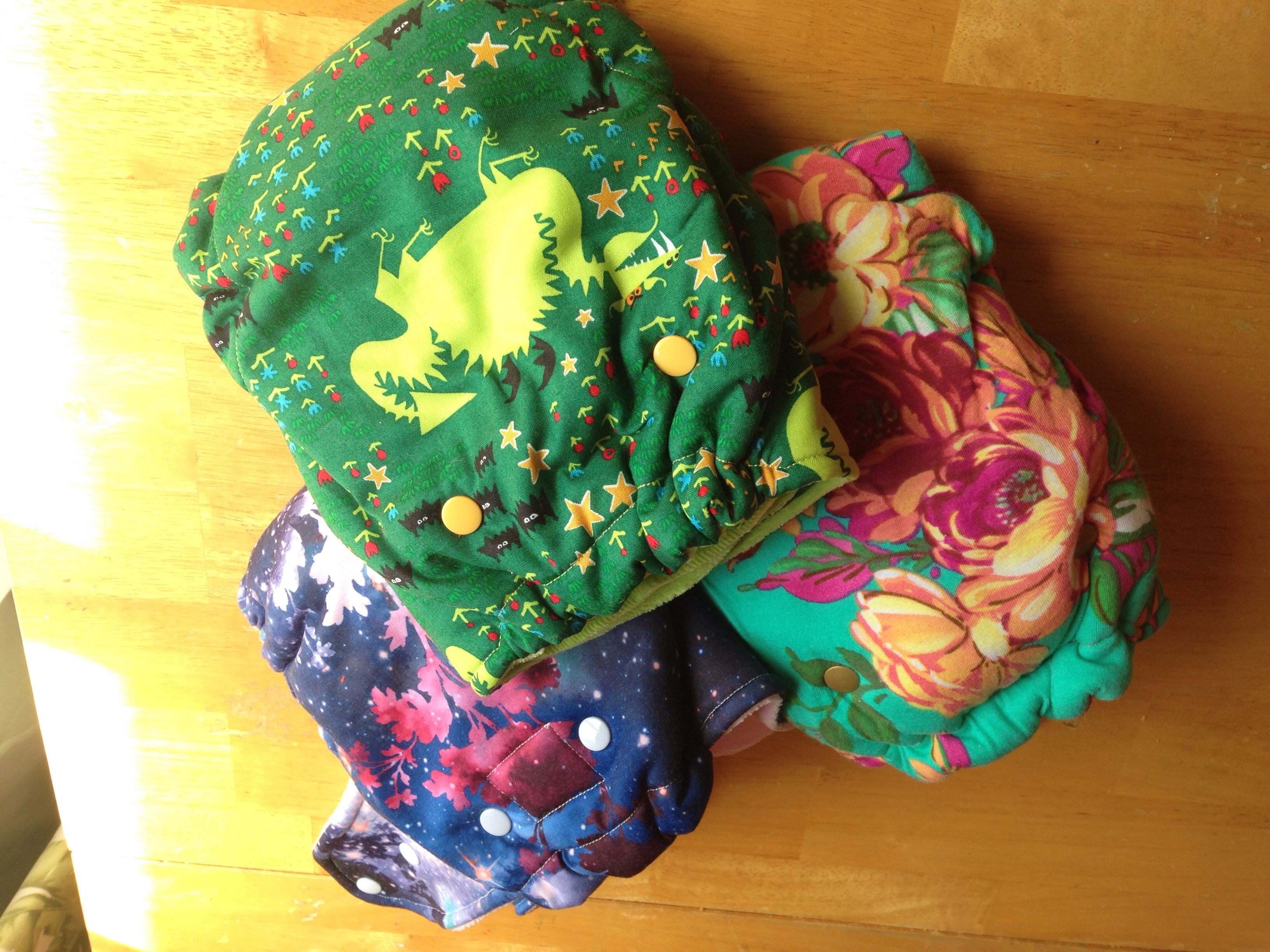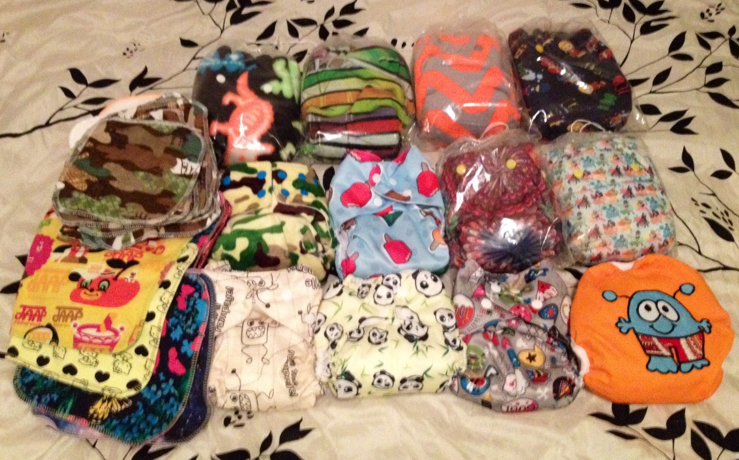 Here's my stash. I also have a TMNT, Mario, a pirate print and surprise print on the way. All kinds and some wipes and random inserts....I wish I had a bum to put them on now!