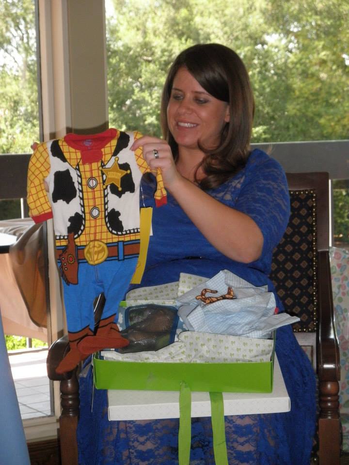 Thoughts/vents? My family has been really amazing. They are not very emotional people, but they have really changed that with my pregnancy. It is the first grandchild and great grandchild, so there is a lot of excitement. The venue had a shower scheduled for next weekend as well and those people called to cancel. They got the dates mixed up and canceled mine instead, so when my aunts and cousins arrived to set up, nothing was ready and the original room they wanted was no longer available. I never would have known anything was wrong and it all turned out great. My grandpa was really sweet and hosted a lunch for all the boys in the family at the same venue. He is so excited about this baby and it is adorable. My two childhood BFFs were there and my aunt got us all matching onesies for our LOs! Also, my cousin who is away at college sent us the Woodie onesie because that was his favorite when he was little.My mom also got us a bookshelf(on top of the hundred million other things she has bought for us) and a library for LO.