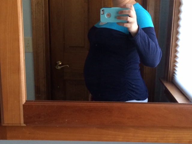 Please ignore the box in the background we're moving in 3 weeks and boxes are overtaking our lives. 25 weeks here. It's funny how different people see you. One person said "You're huge" And then a couple days later "Where are you hiding a baby in your pocketbook?" You all look great