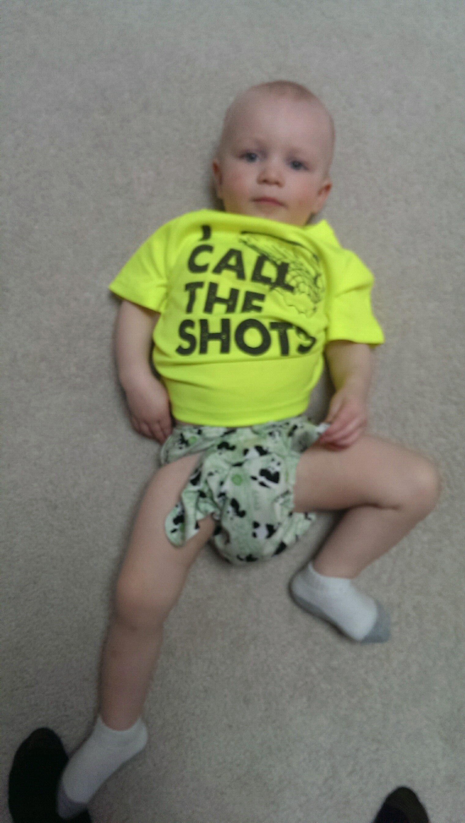 LOL! Is it just me, or does it look like you need to buy some more DC diapers? Maybe some nice aplix AIOs... Also, he is SO tall! Or maybe he looks tall b/c his thighs aren't as chubby as DS's. Still, so cute!
