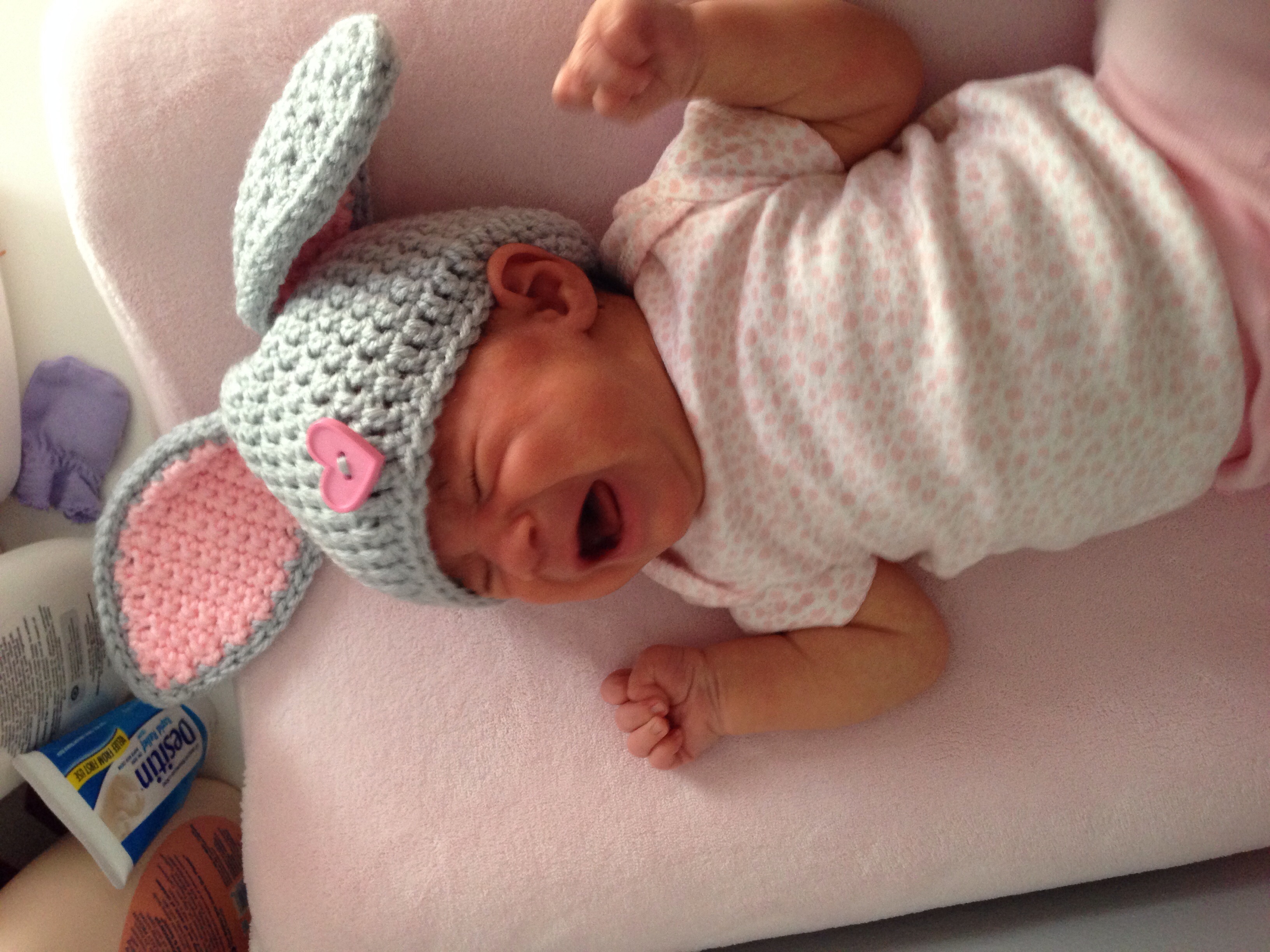 I think @pepperedmoth and I live parallel lives L is over 3 weeks old and got her first real bath today. We've washed her hair and wiped her down, but that's about it. Ai don't feel bad, her skin is so sensitive I don't think she would do well with frequent baths.