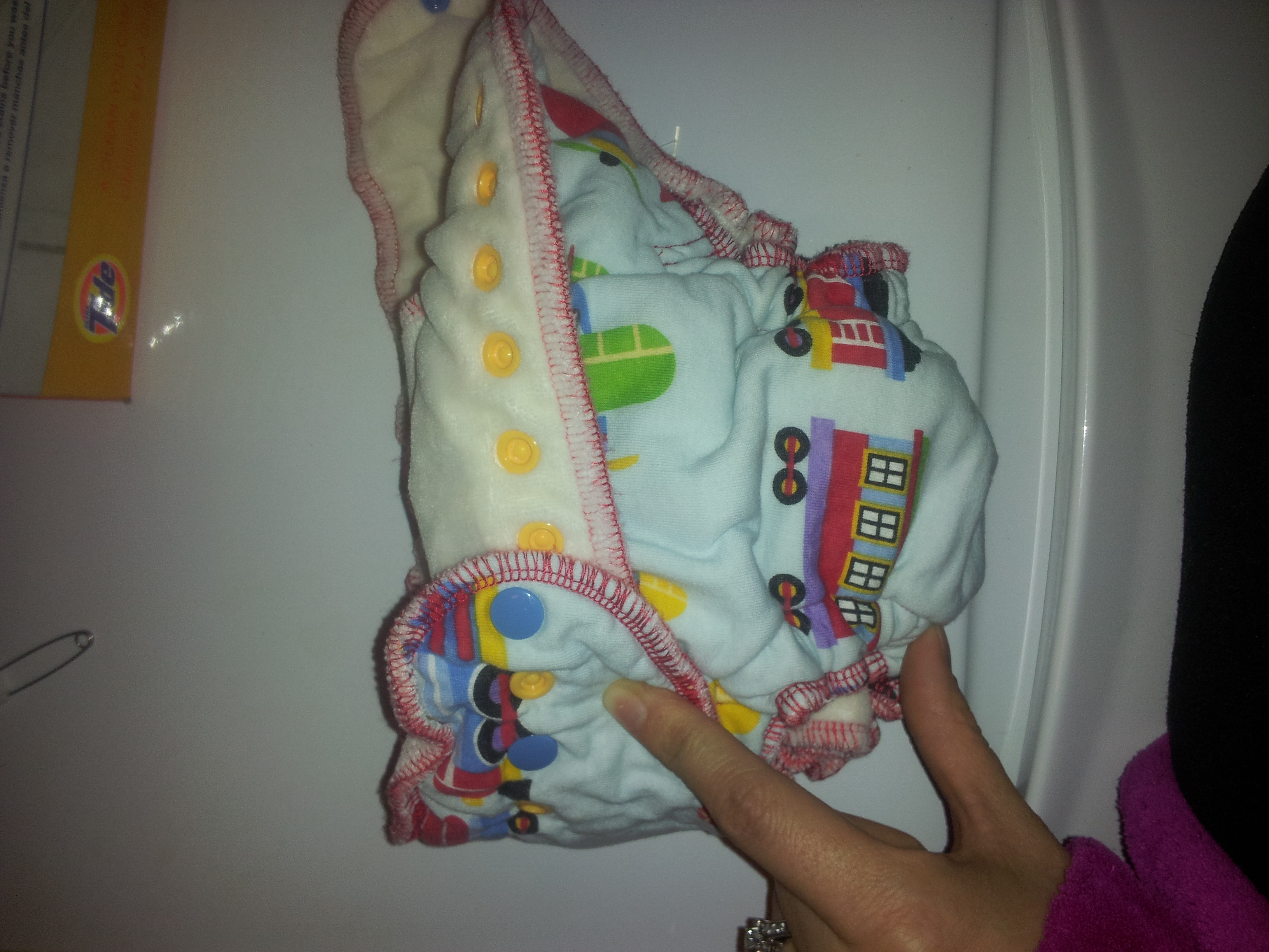 Then fold the wings over to snap your diaper.