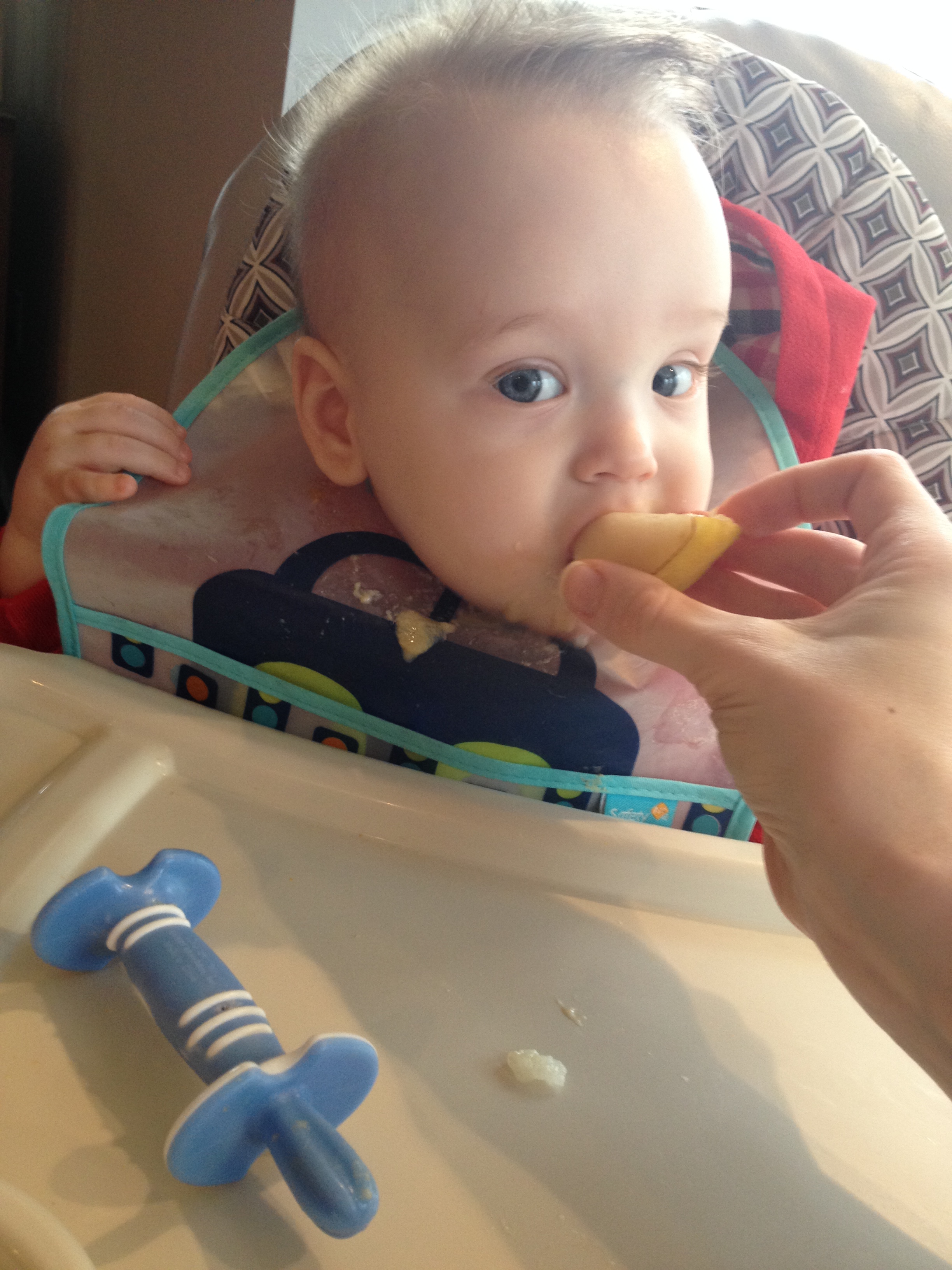 Any reservations or success stories to share so far?  He adores his sweet potatoes and yams.  And he will now tolerate his cereal better since he can dunk his toast strips in it.  No reservations, total fun!