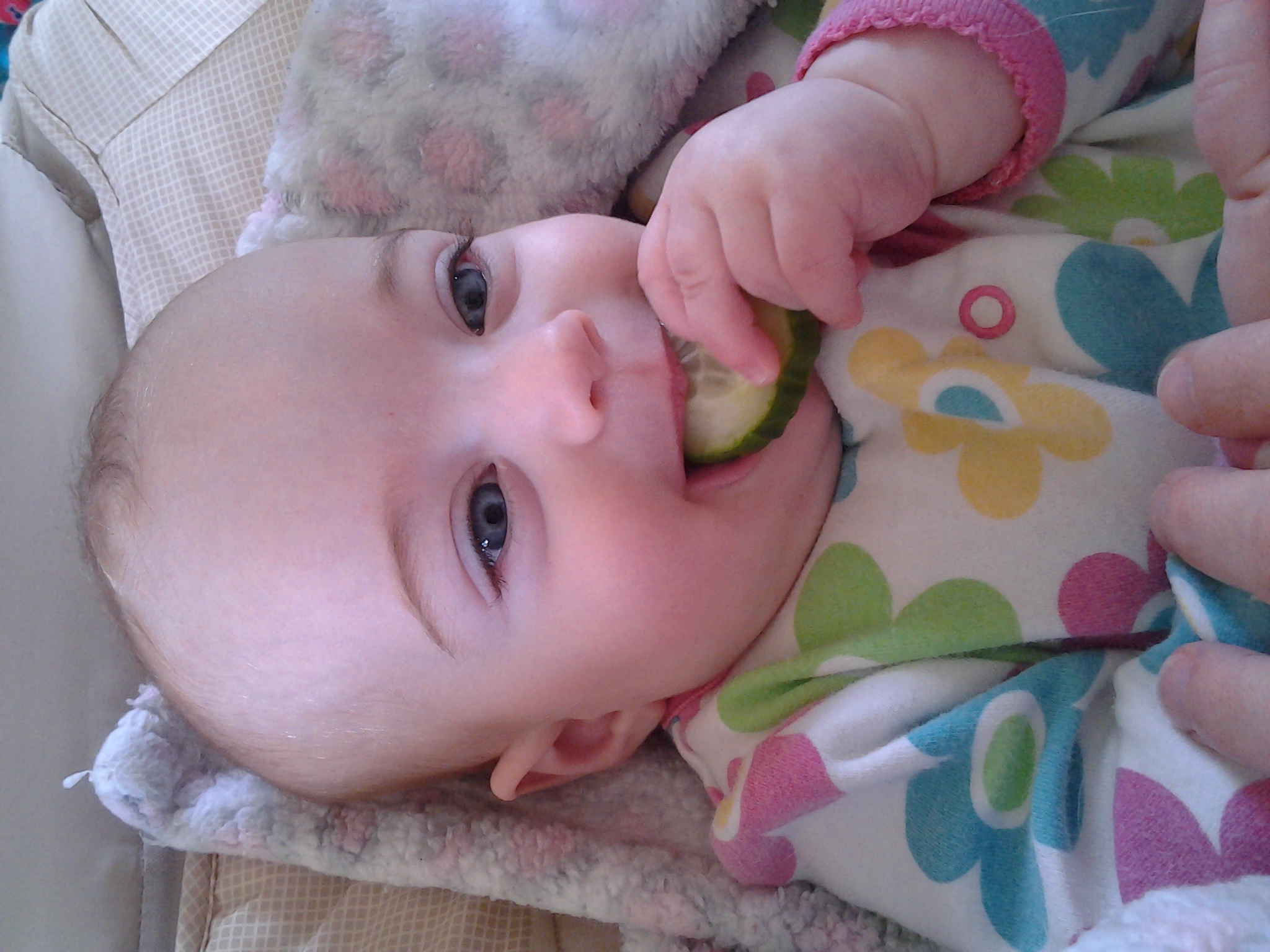 What will you try next? We did pickles yesterday. She loved it, but she got off a pretty big chunk. I didn't wait to see if she would work it out or not. I took it out. I will probably try asparagus or green beans.