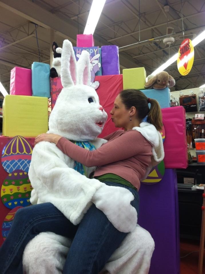 E is only 4 months old and even she knew there was something not right about the giant bunny: