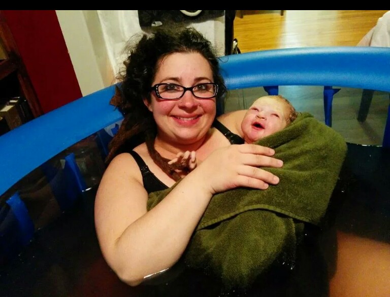 The birth tub helped ease some of the discomfort and I started pushing by 9pm. The room had dim lights, candles, my birth banner that friends and family made to support me and of course my awesome birth team that included my DW , midwife , midwifes apprentice, doula and birth photographer. Mt doula was a godsend. She knew exactly what I needed before I even knew it myself! The cold wash clothes with lavender were so helpful to cool me down. I pushed and pushed some more both in the rub and also in the bathroom a bit.