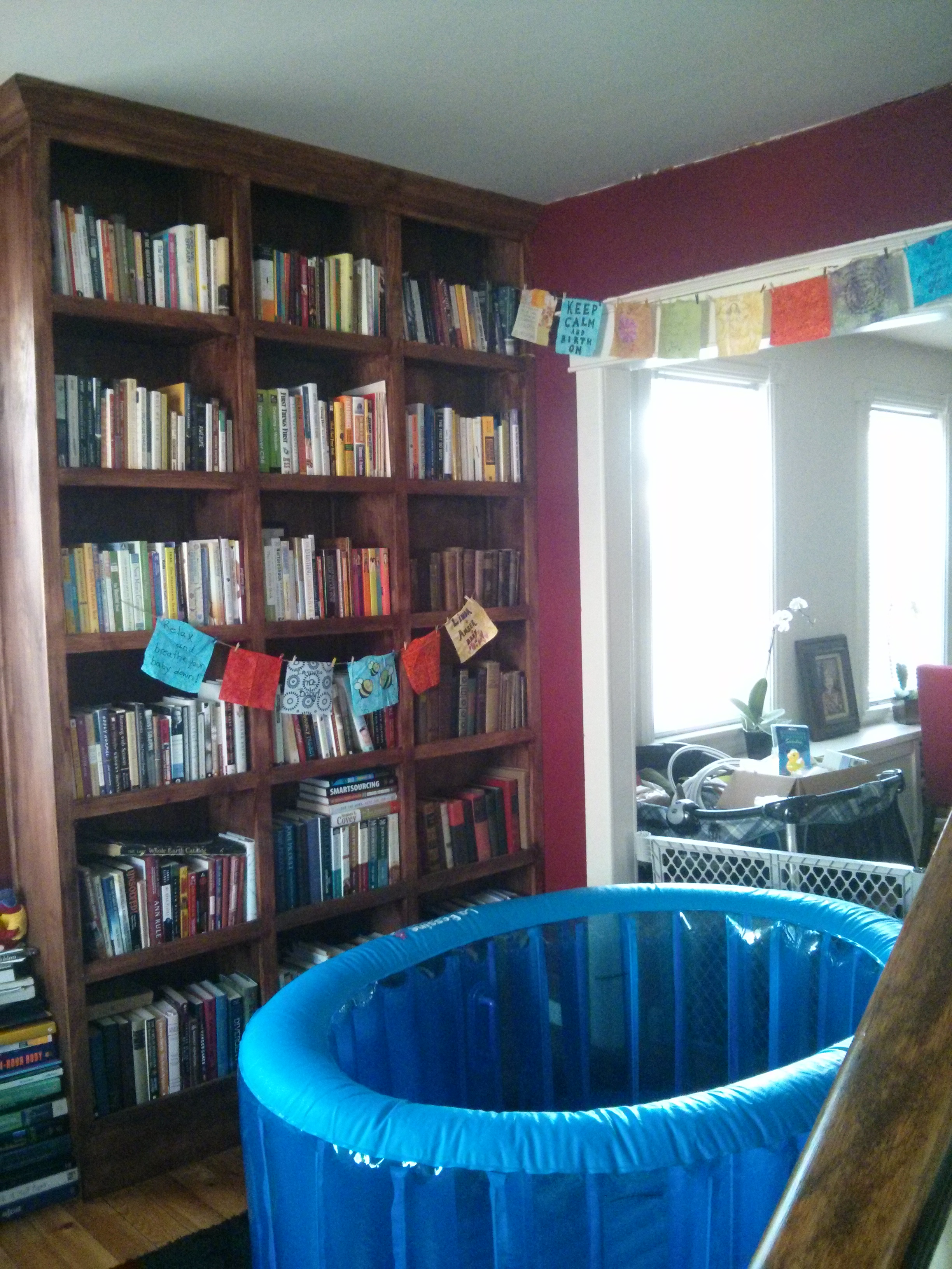 Monday morning was just another day, I decided to go out so I wasn't home wondering when baby would come. After reading and sipping a decaf latte at Starbucks for an hr or so I went shopping for a few items. Still just felt like a normal day, no signs of impending labor at all. I arrived home and relaxed a bit and DW arrived home from work at 3:30. She had been pretty sick for days and she came home early to relax a bit. At 4:15pm a had a few contractions but didn't think too much about them...by 5pm they started coming regularly and quickly so we started timing them. When we realized they were about 3-5 min apart we called the midwife and our doula.Because it was my first labor we expected a long labor... But the baby had a different idea! The midwife and doula arrived by 8pm. I was having regular intense contractions, and they quickly began prepping. DW was doing an awesome job supporting me, reminding me to breathe for baby and helping prep for the birth. By 8:30 I was feeling "pushy" and my midwife said if I wanted a water birth I better get in the tub!