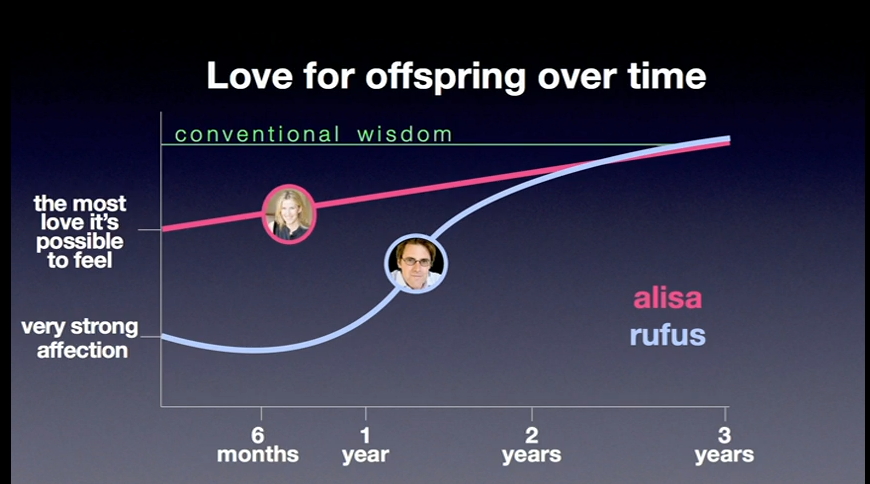 Here's a chart from the video - graphing love for your kid over time