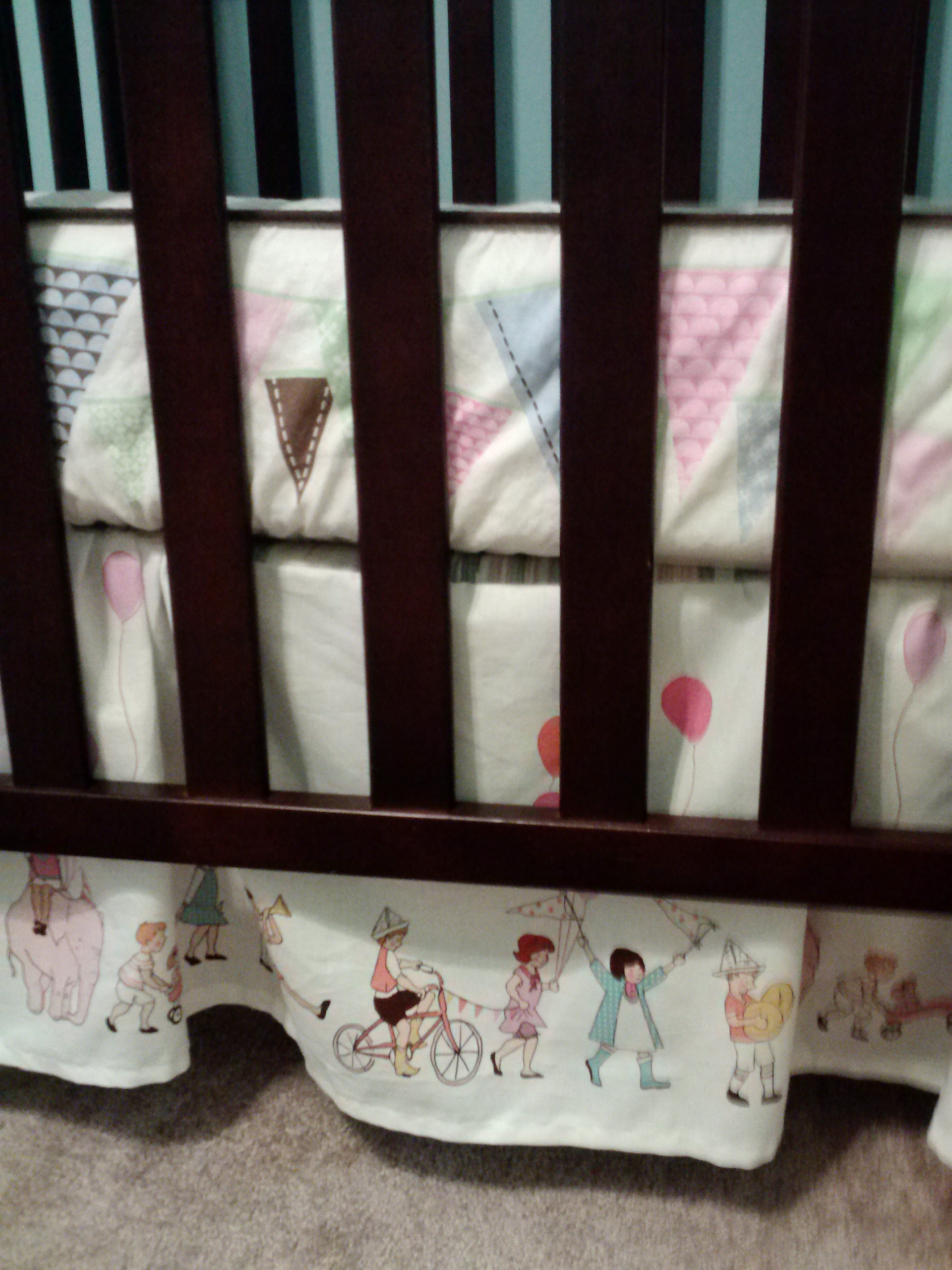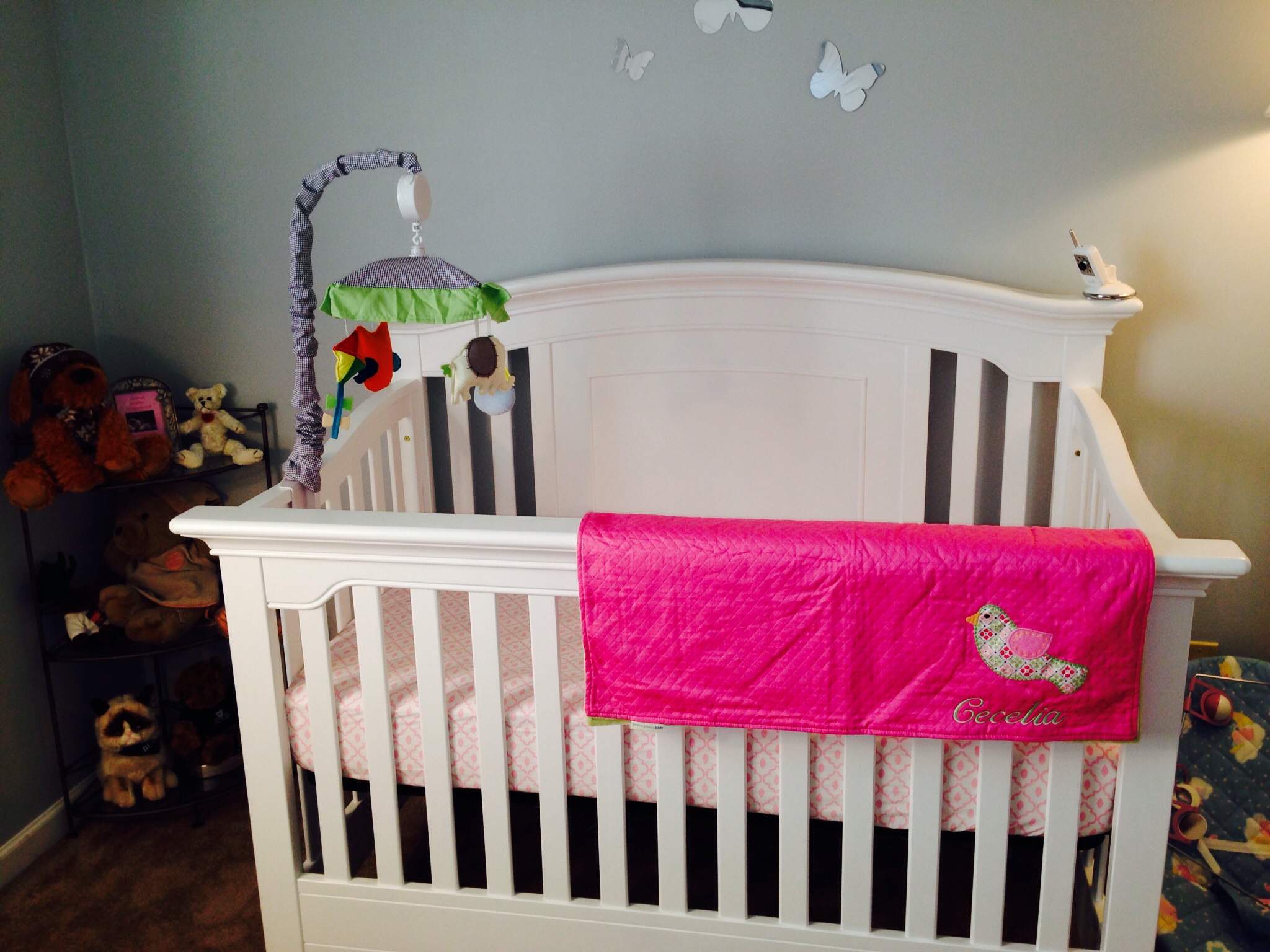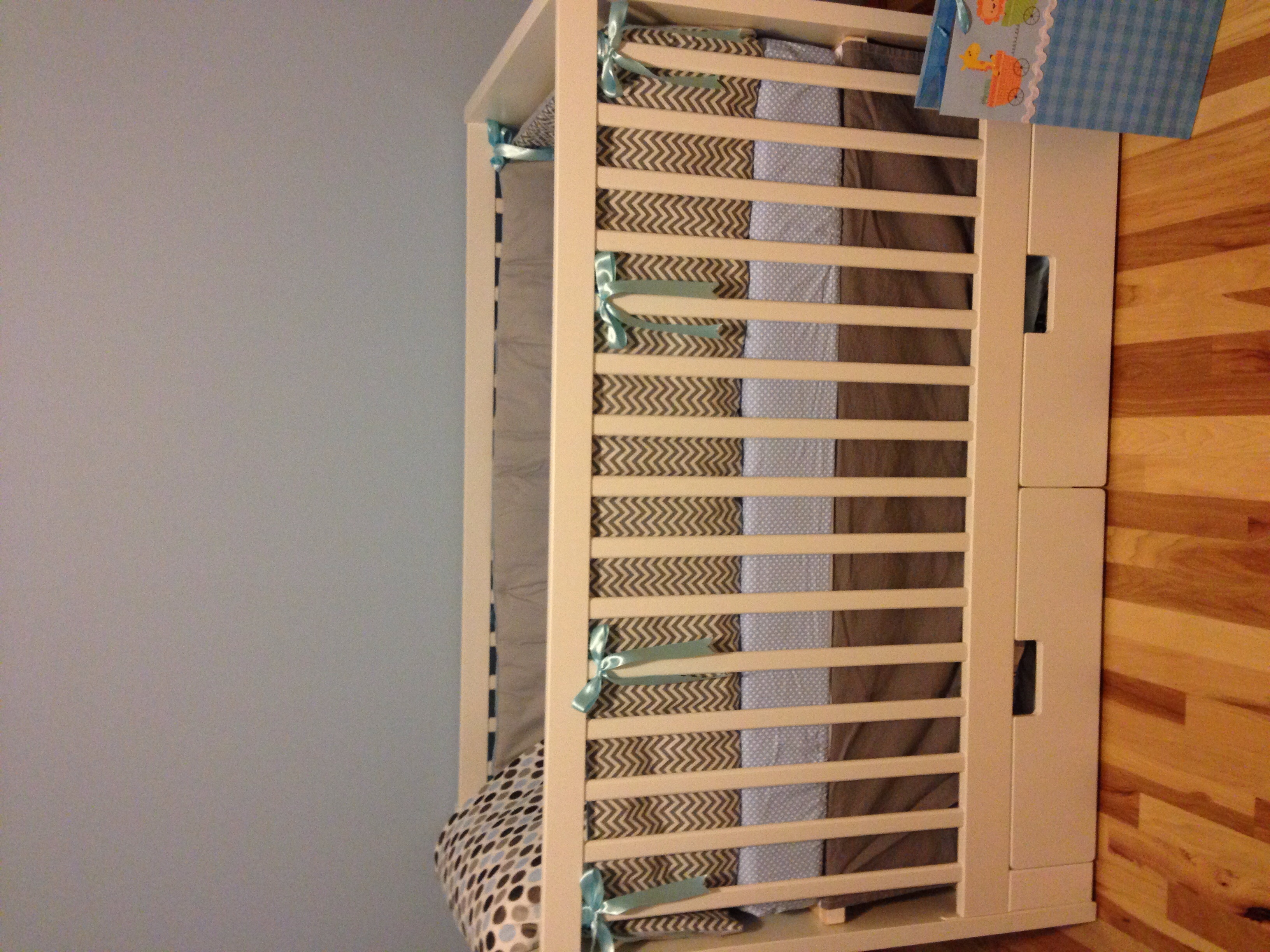This is all I've really gotten done so far; crib assembled and bedding washed and put on it. Changing table also assembled (need a changing pad). Had my shower this weekend, so I got a few more little things to add (including some wall decorations), but waiting for my paint to finish curing before I start putting stuff on the walls.