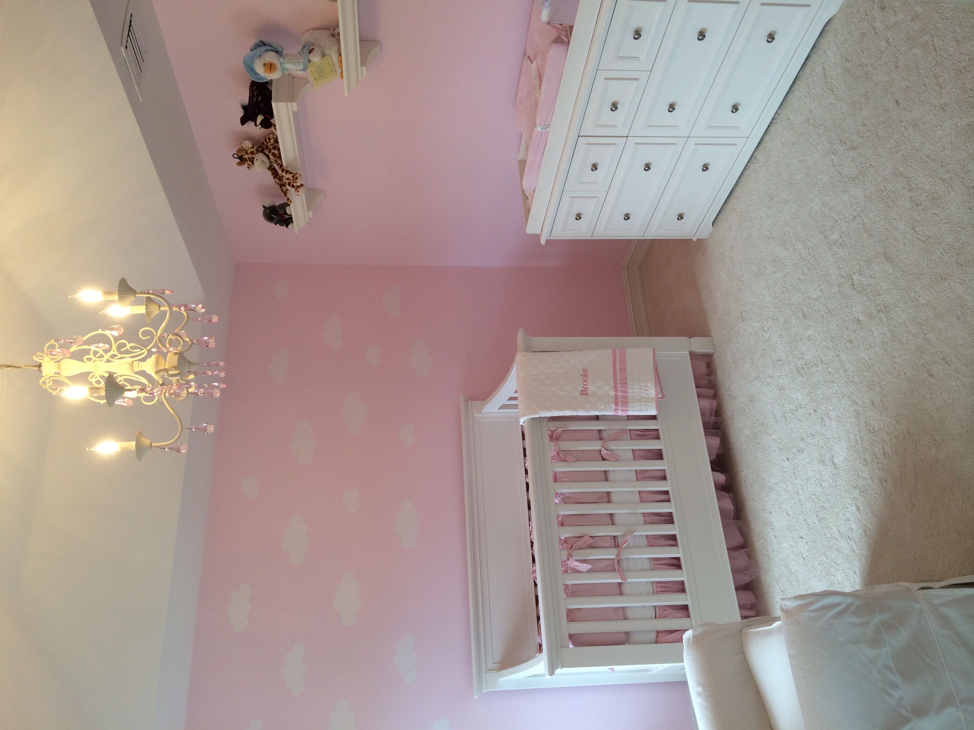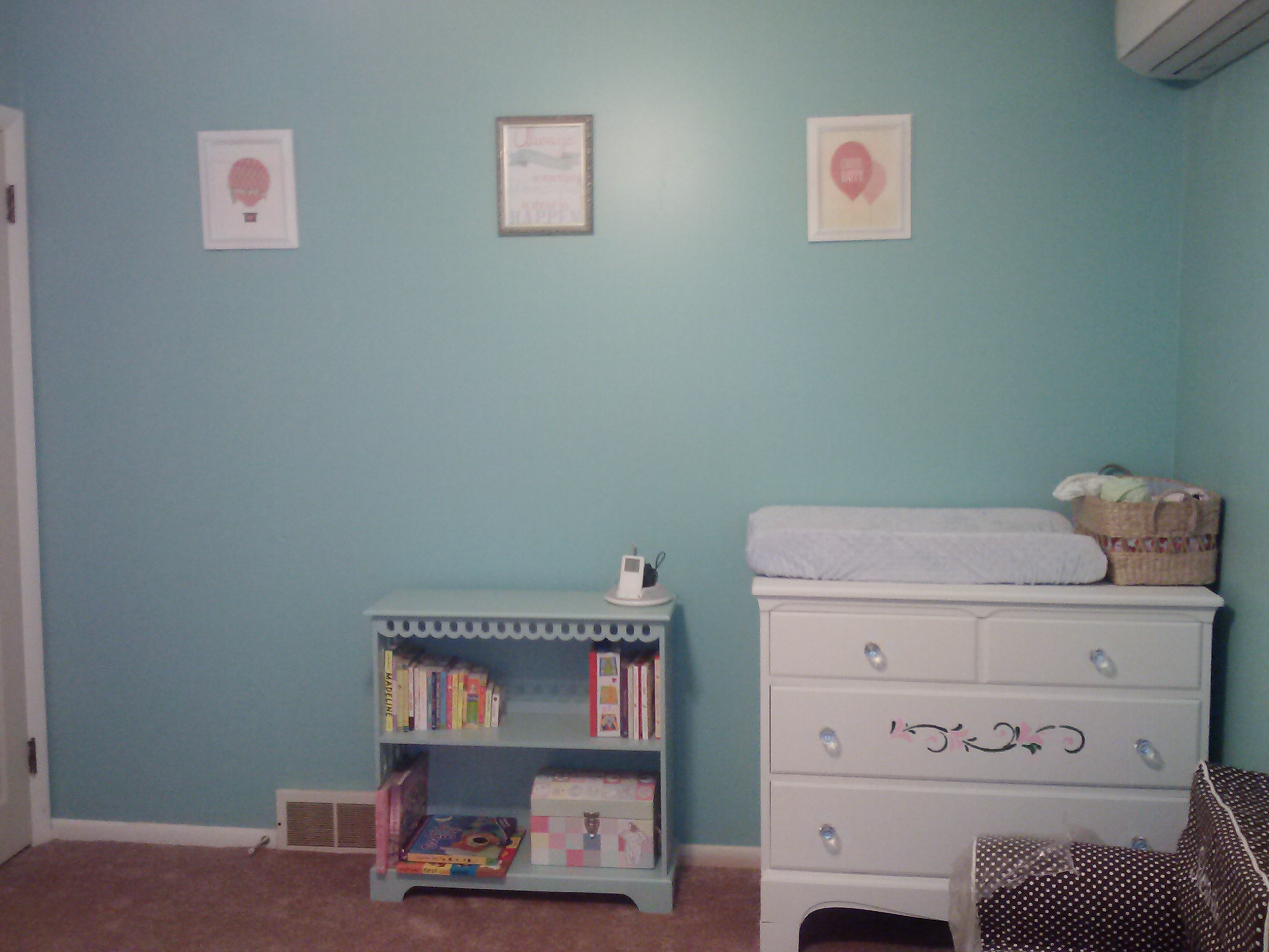 I mostly lurk, but here is a pic of our girl's nursery/guest room. I'm going to rearrange the stuff on the walls cause I'm not happy with how it all looks.