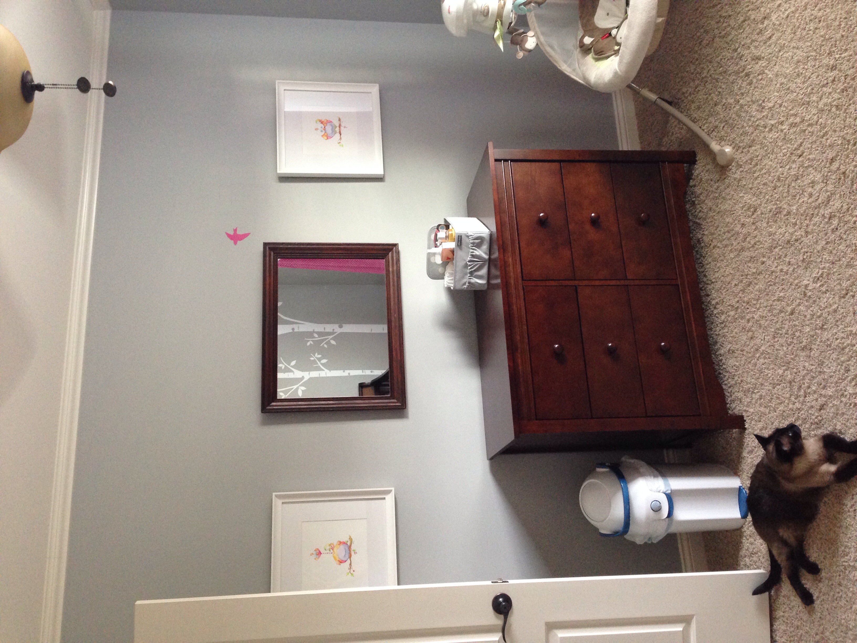 OMG so jelly of all of you ladies who have dedicated nurseries!! We're rooming in with our WeeNut, which is a mixed blessing. I love knowing she'll be close, but hate not having a large space to decorate for her. Or, ya know, a place to put a glider. LOL!! I'm gonna cram one in to our bedroom SOMEHOW!!!