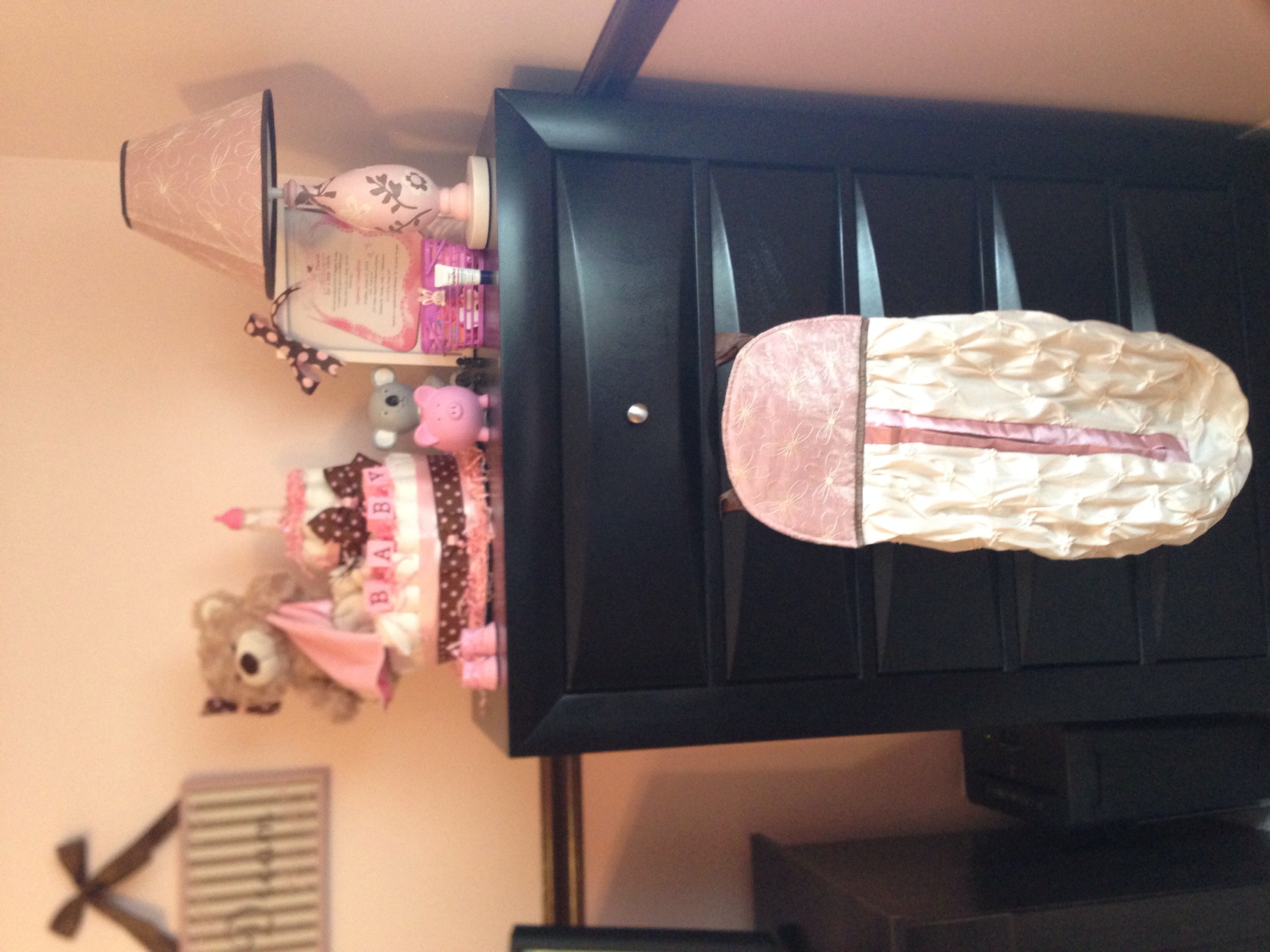 So far the only thing I have finished (I think!) is our changing table/dresser. The dresser is vintage and DH sanded and stained it to match our crib. I kinda love it!