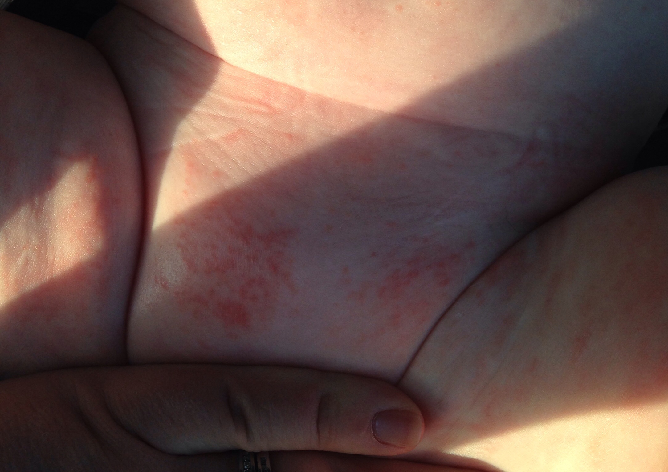 Does it look more like heat rash or maybe yeast? I am a bit lost. Sorry for the crappy pic, took it while changing him in the back of the car.