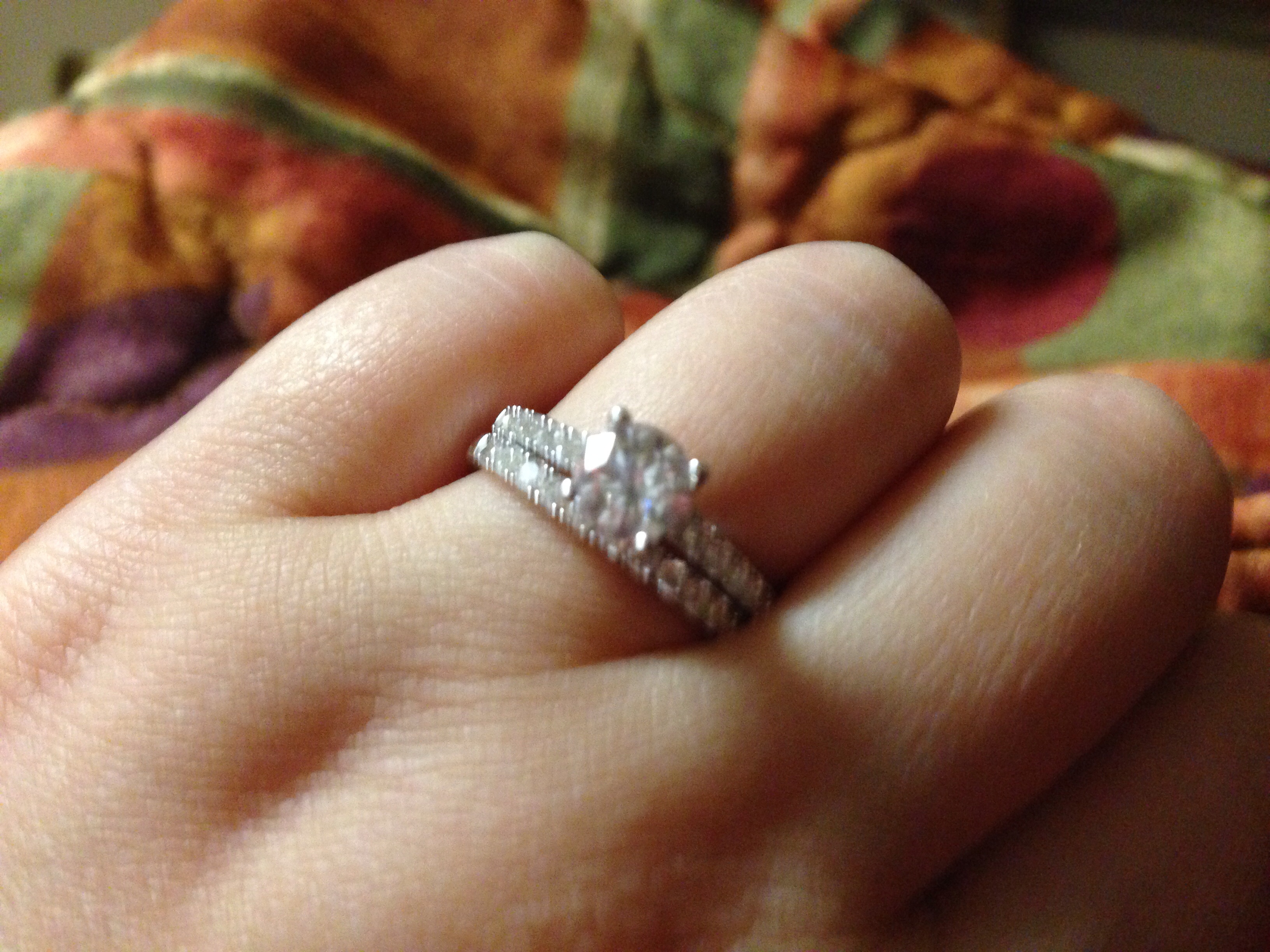 At 9 weeks my fingers Already look like sausages and my wedding ring was getting tight (it was already a little snug to begin with ). Rather than not wear a ring I decide to go to walmart and get a bling ring with some additional room to grow. It is kind of fun to have a big shiny but very fake rock.