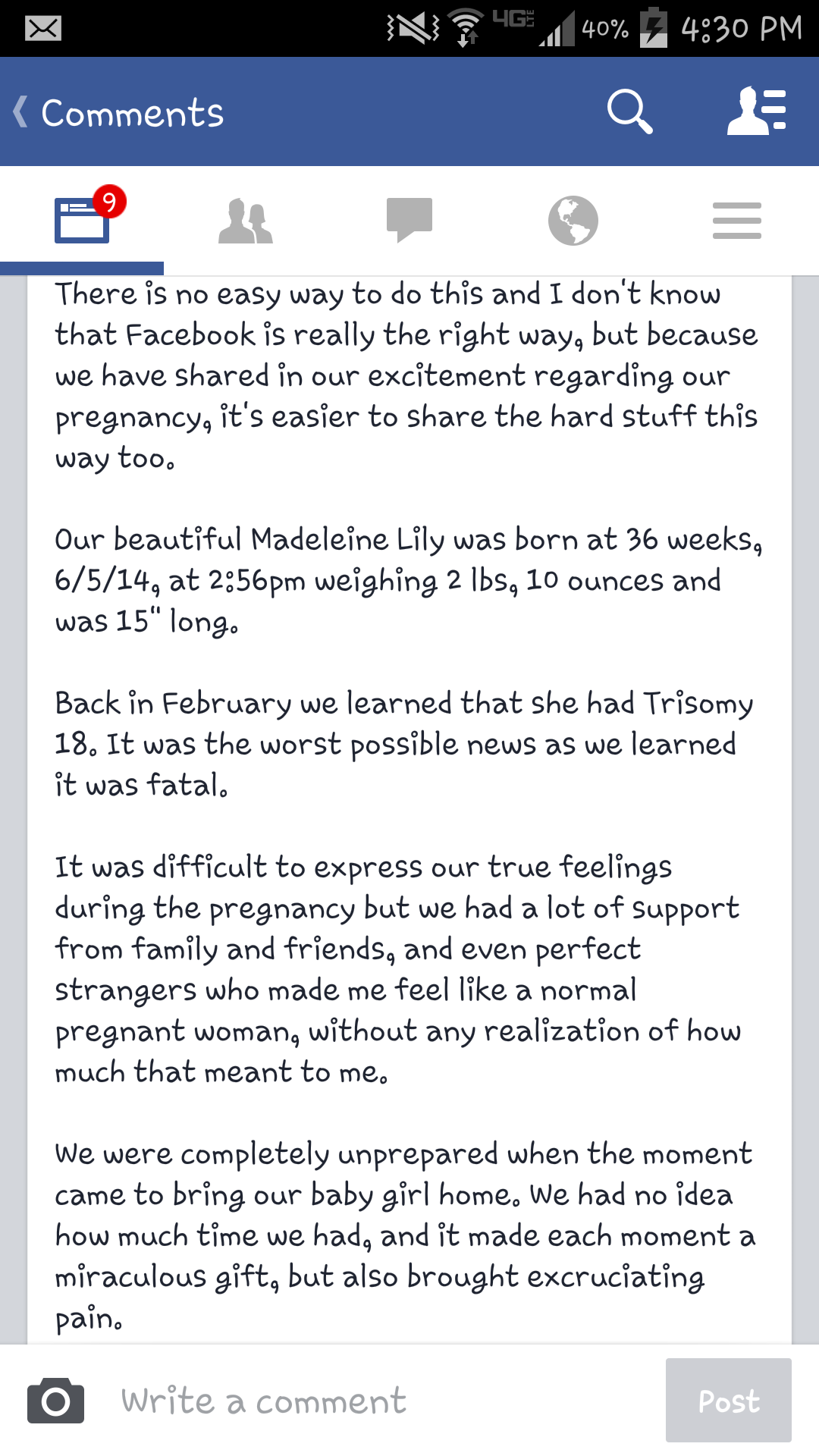 I've screenshotted what she posted to Facebook. Since I'm on mobile, I'm not sure how it will post...