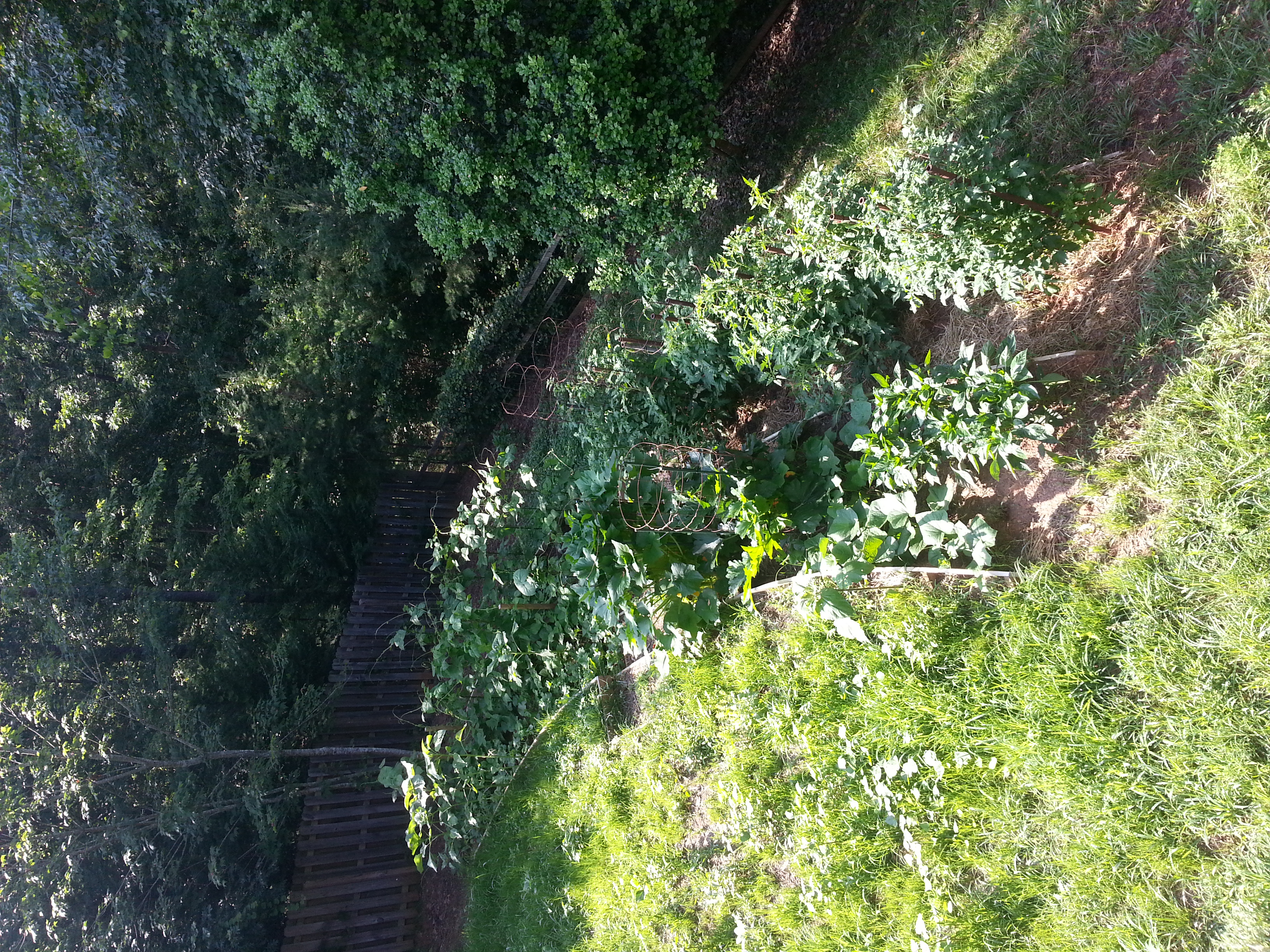 The strawberries were a bust, I think, and one of the bad t-storms we had broke our cucumber stalk