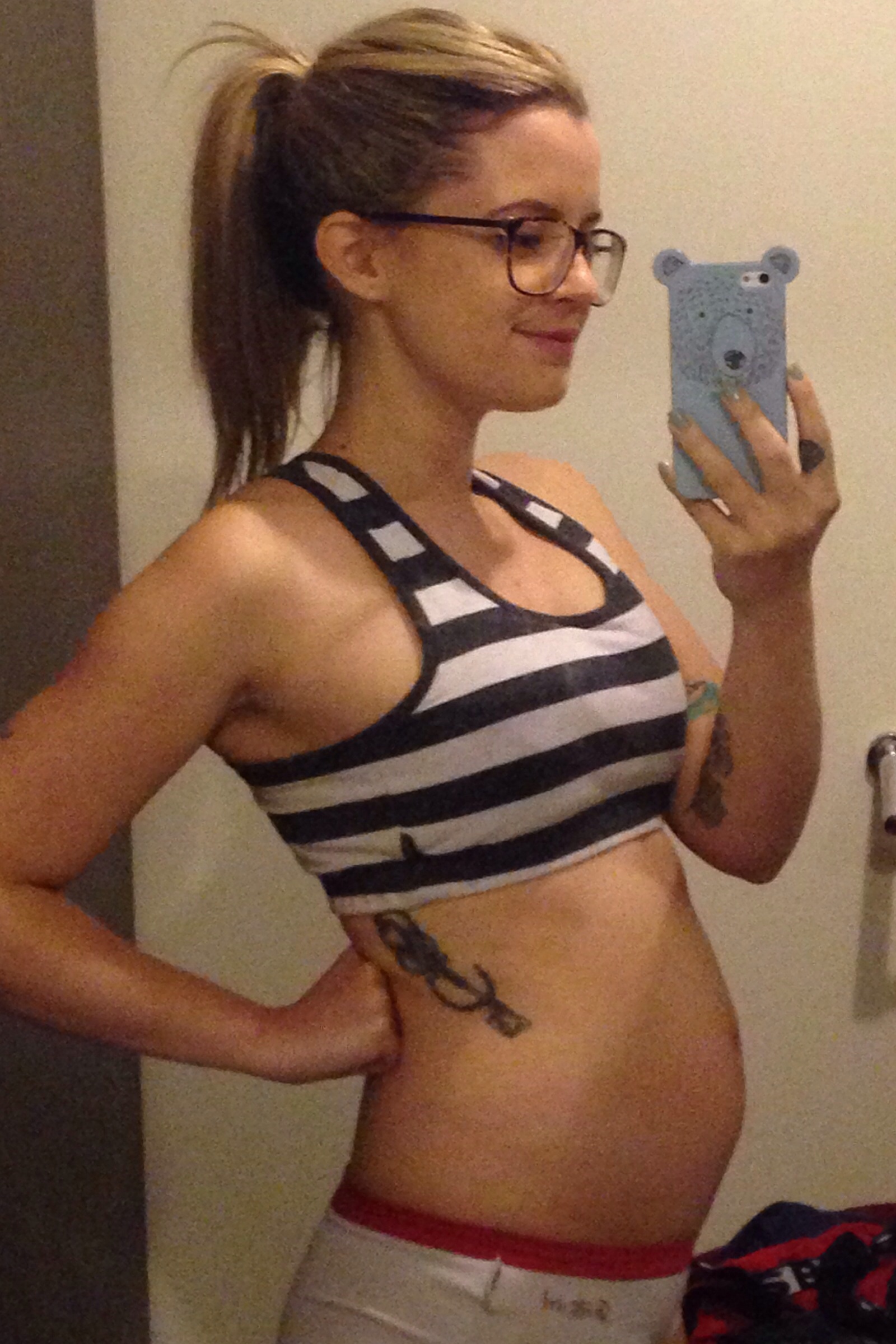 I have yet to really get a bump, wide hips and long torso. But I hope it's ok to share a pic from our A/S on Monday. It was a huge relief to get to see the little one happy and healthy! Also, the 3D/4D imaging is really cool, thankful that's what they use at my office!