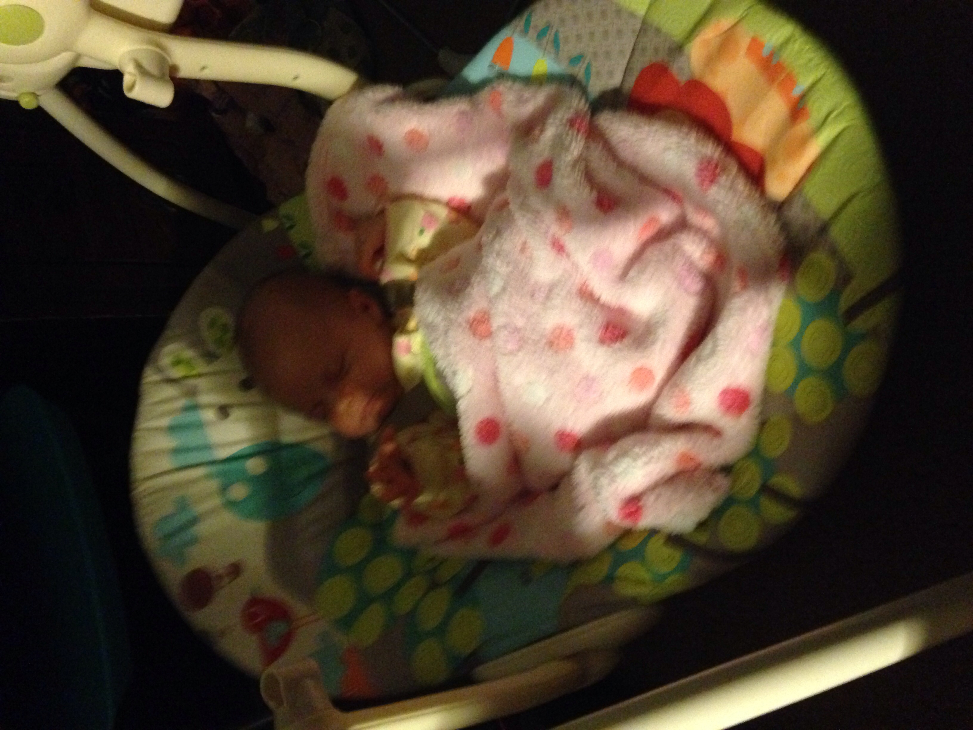 Thank The Lord for infant swings! Cora just slept from 11 pm until now (7am). I am currently WAKING HER UP (my boob alarms are going off and leaking everywhere) Woohooo! This swing better work again tomorrow night! I wish I could gif right now...