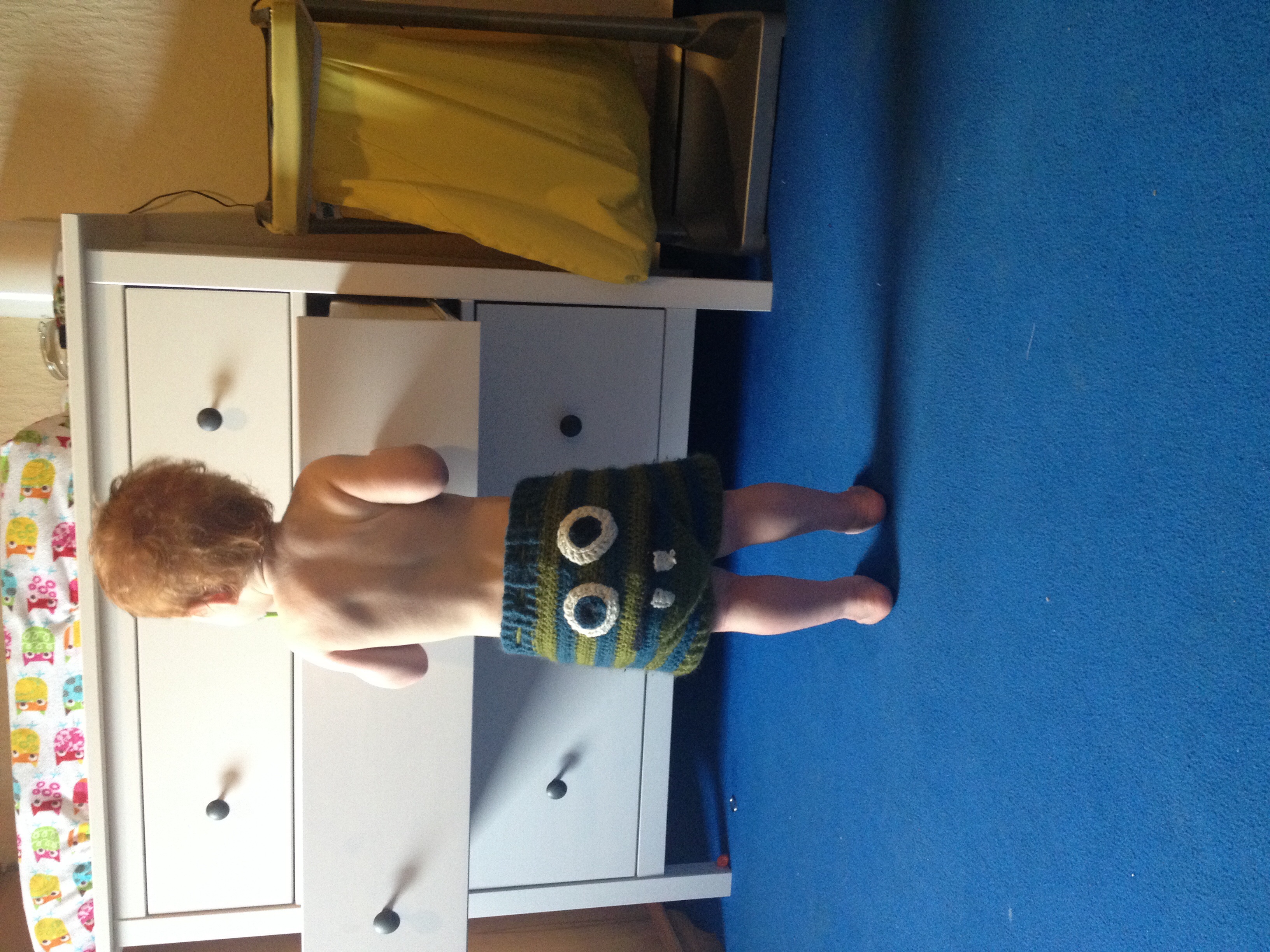 Here is C in a limited edition Bummis print cover. Elephant Tales.